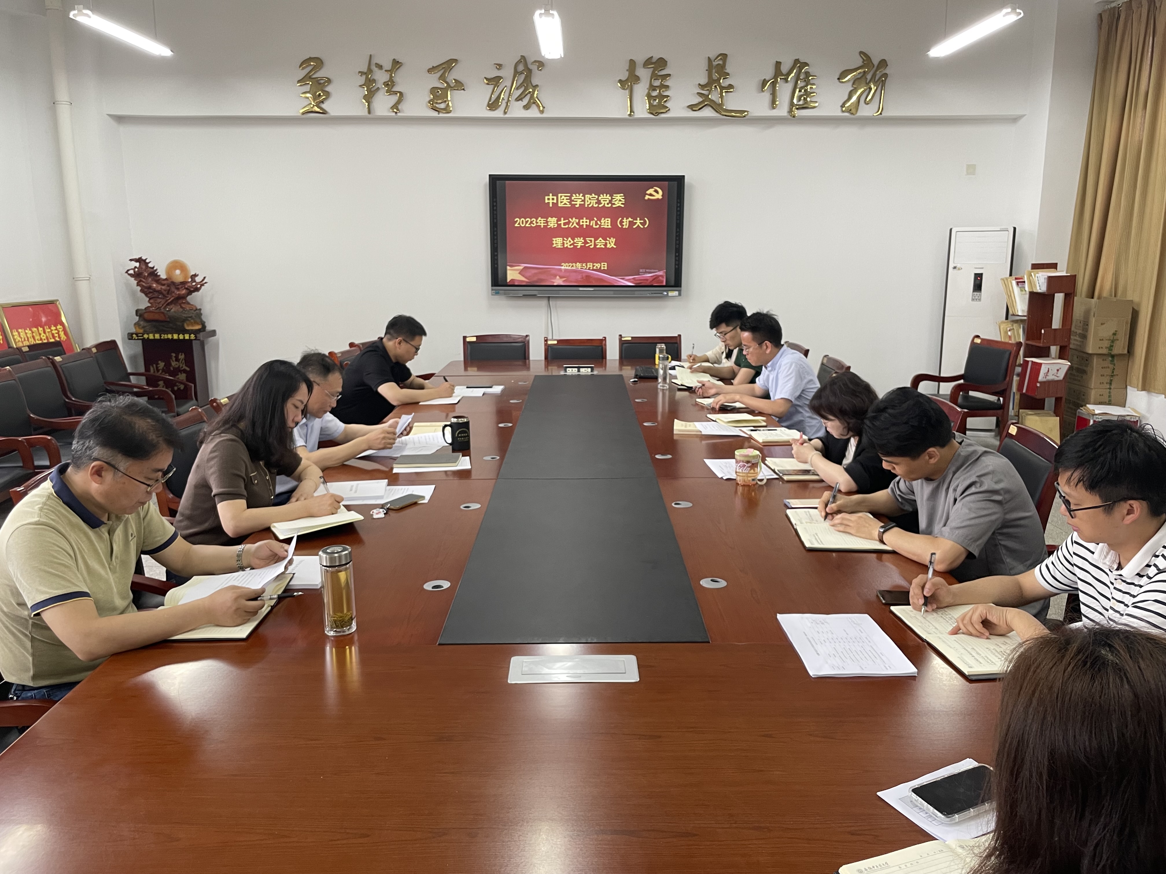 5月29日上午,中医学院在B9楼A301会议室召开2023年第七次党委中心组(扩大)理论学习会议,学院党委中心组成员、学生党支部书记及全体辅导员参会,会议由学院党委书记杜明主持。