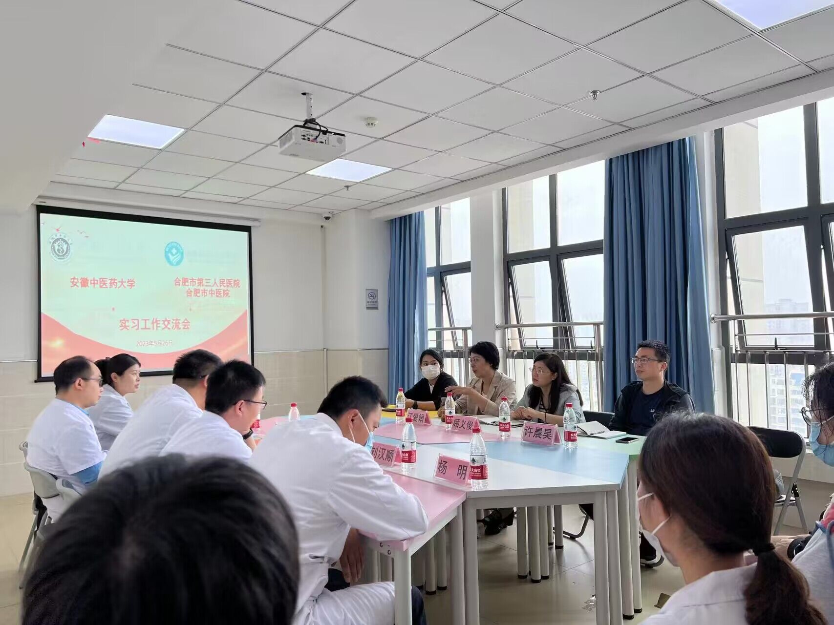 在与实习生交流过程中,与会领导和老师倾听了学生的实践感受,并对学生提出的问题进行了解答和交流;与会领导和老师鼓励实习生在实践中增长才干,提升自己,同时要求学生切实遵守学校和医院实习管理规章制度,合理处理好考研与实习的关系,为今后走向工作岗位奠定坚实的基础。
