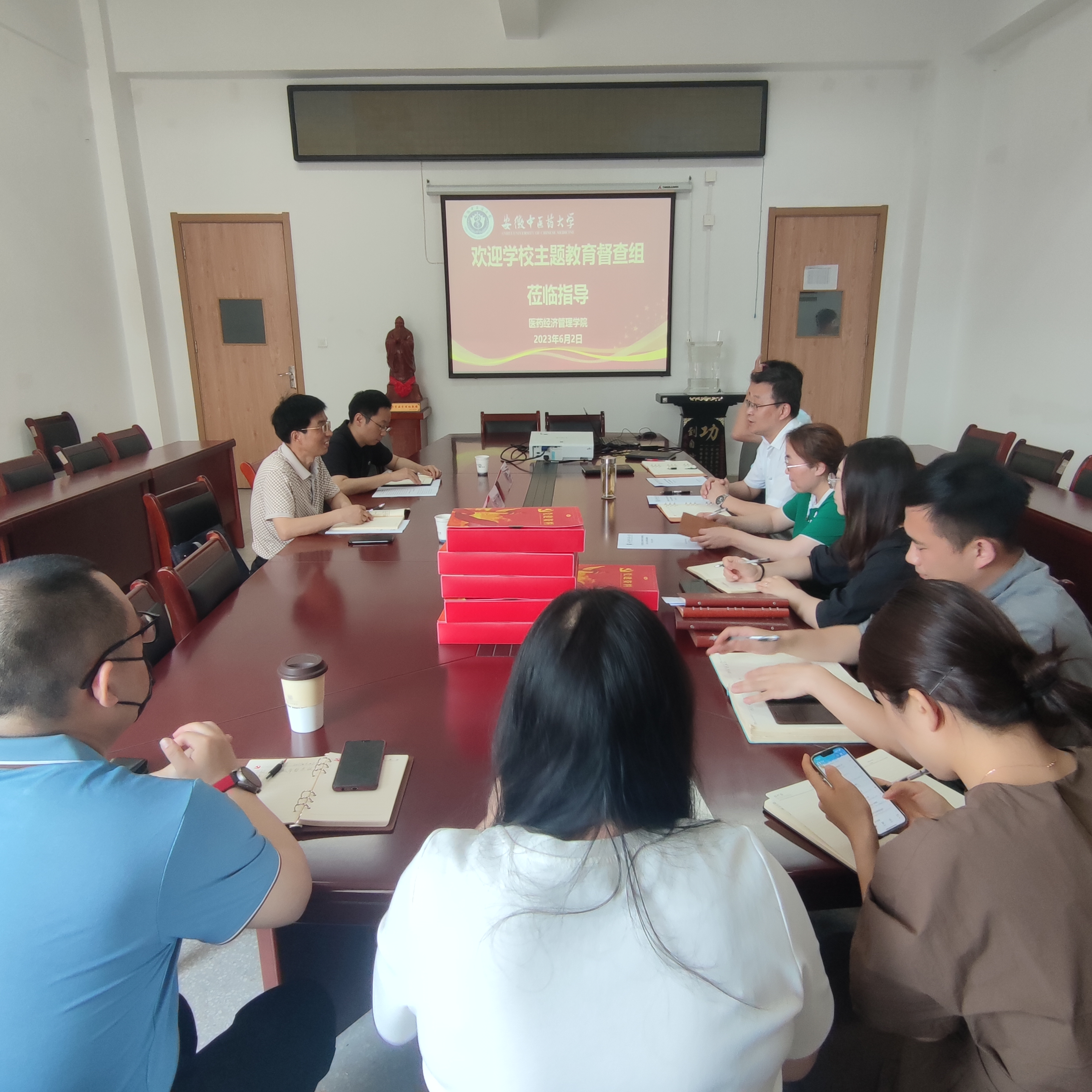 6月2日上午,校纪委办公室正处级纪检监察员朱烨,校纪委办公室副主任、综合管理室主任秦瑜对医药经济管理学院学习贯彻习近平新时代中国特色社会主义思想主题教育开展情况进行调研检查,学院党政领导、党委委员及各党支部书记参加本次座谈会。会议由学院党委书记冯鑫主持。