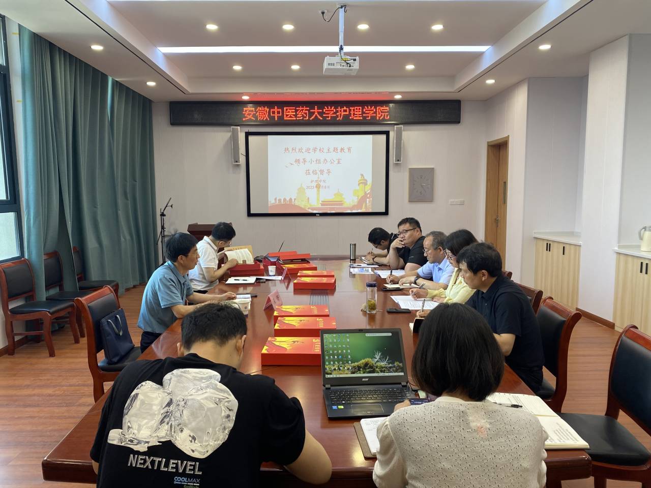 6月8日下午,校纪委办公室正处级纪检监察员朱烨,校纪委办公室副主任、综合管理室主任秦瑜对护理学院学习贯彻习近平新时代中国特色社会主义思想主题教育开展情况进行调研检查。护理学院全体党委委员和支部书记参加会议,会议由护理学院党委书记吴成长主持。