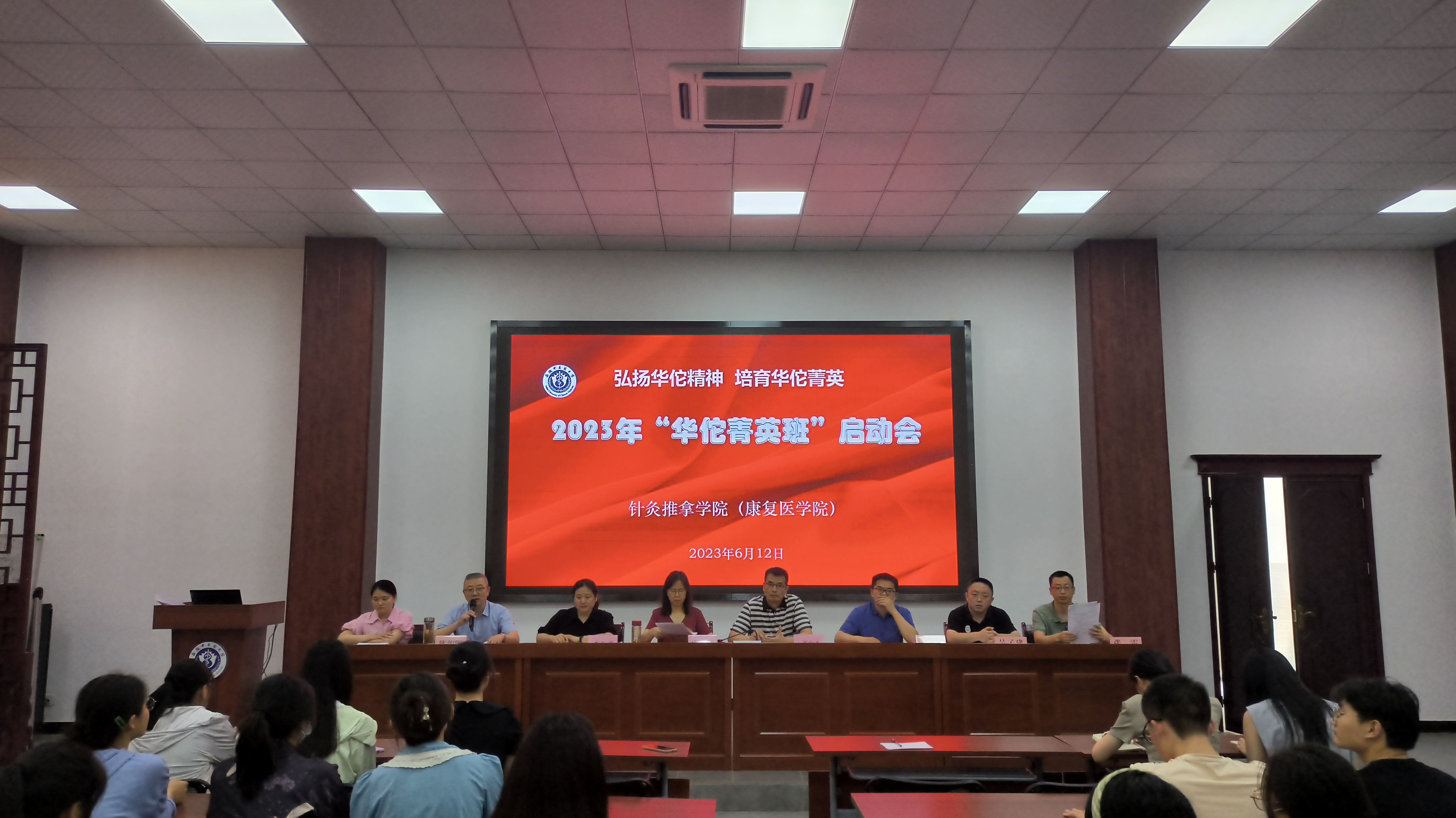 6月12日中午,针灸推拿学院(康复医学院)于少荃湖校区至精楼三楼宅仁堂学术报告厅召开2023年“华佗菁英班”启动会,学院党政领导、“华佗菁英班”人才培养领导工作小组成员、全体专兼职辅导员、2021级临床类各班级学生参加会议,会议由针灸推拿学院党委书记蒋宏杰主持。