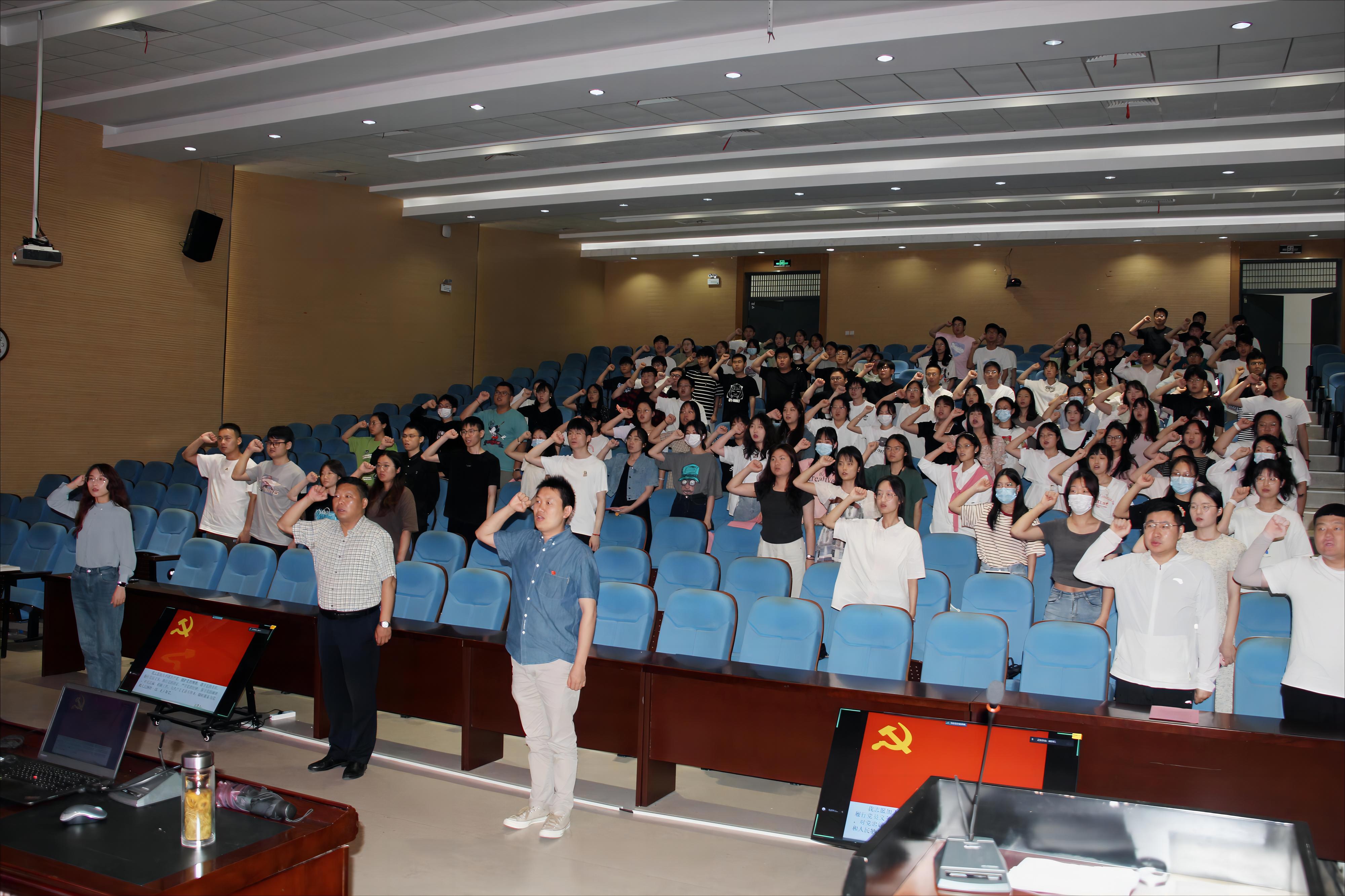 学生第4党支部书记李相南带领全体毕业生党员庄严地举起右手,面对党旗,重温入党誓词。