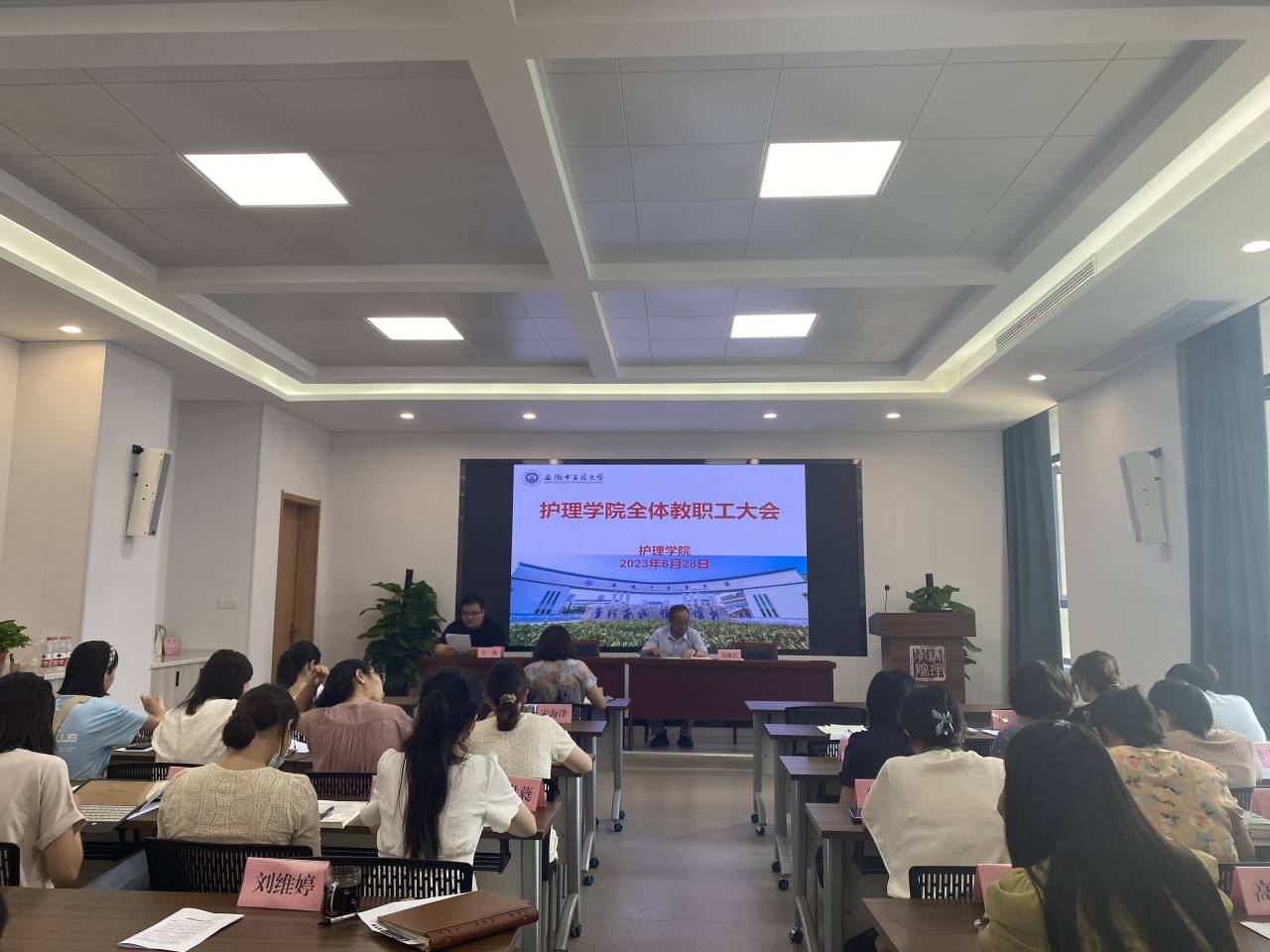 6月28日下午,护理学院在B7-447会议室召开全体教师大会。护理学院全体教师参会,会议由护理学院党委书记吴成长主持。