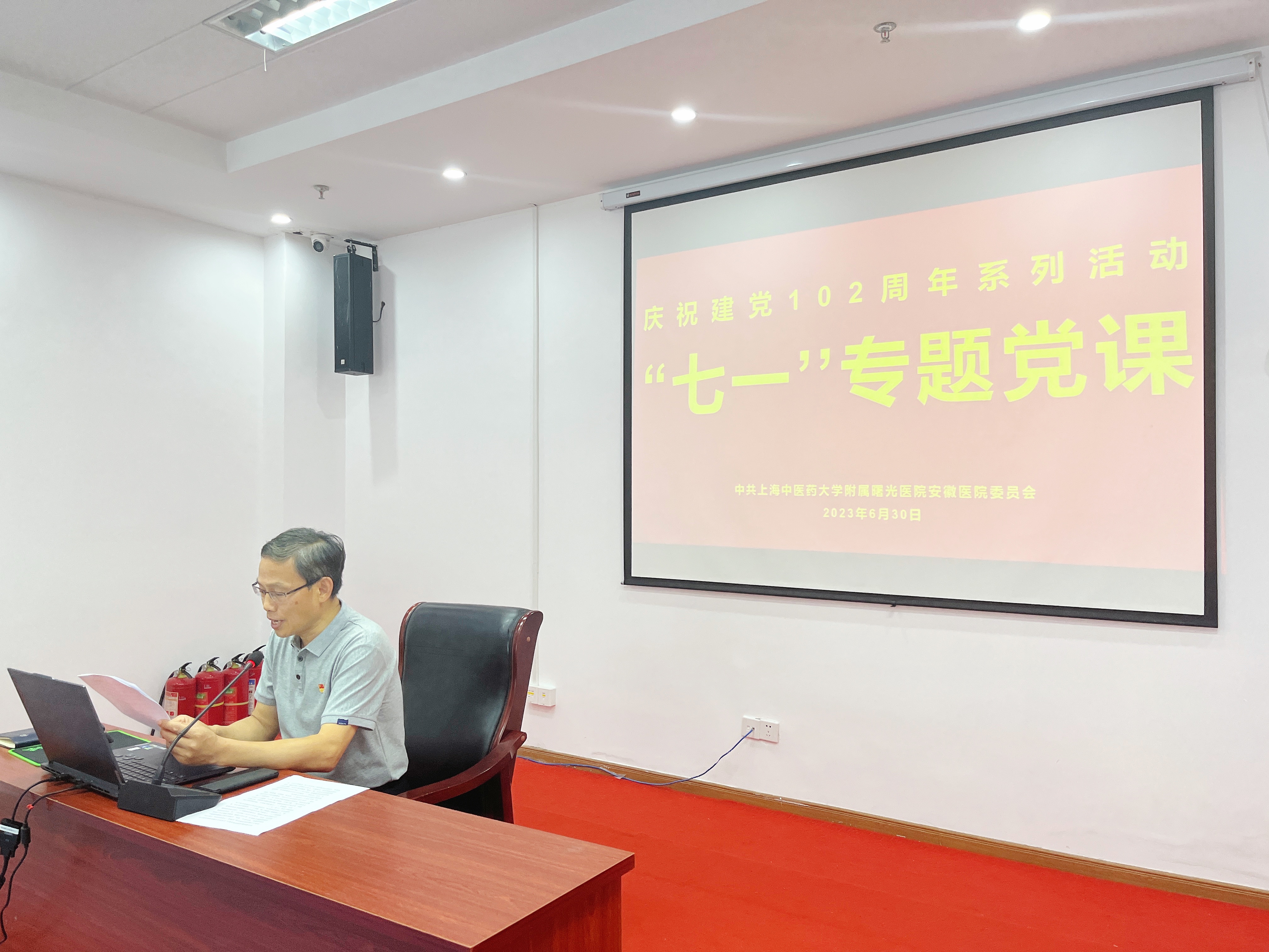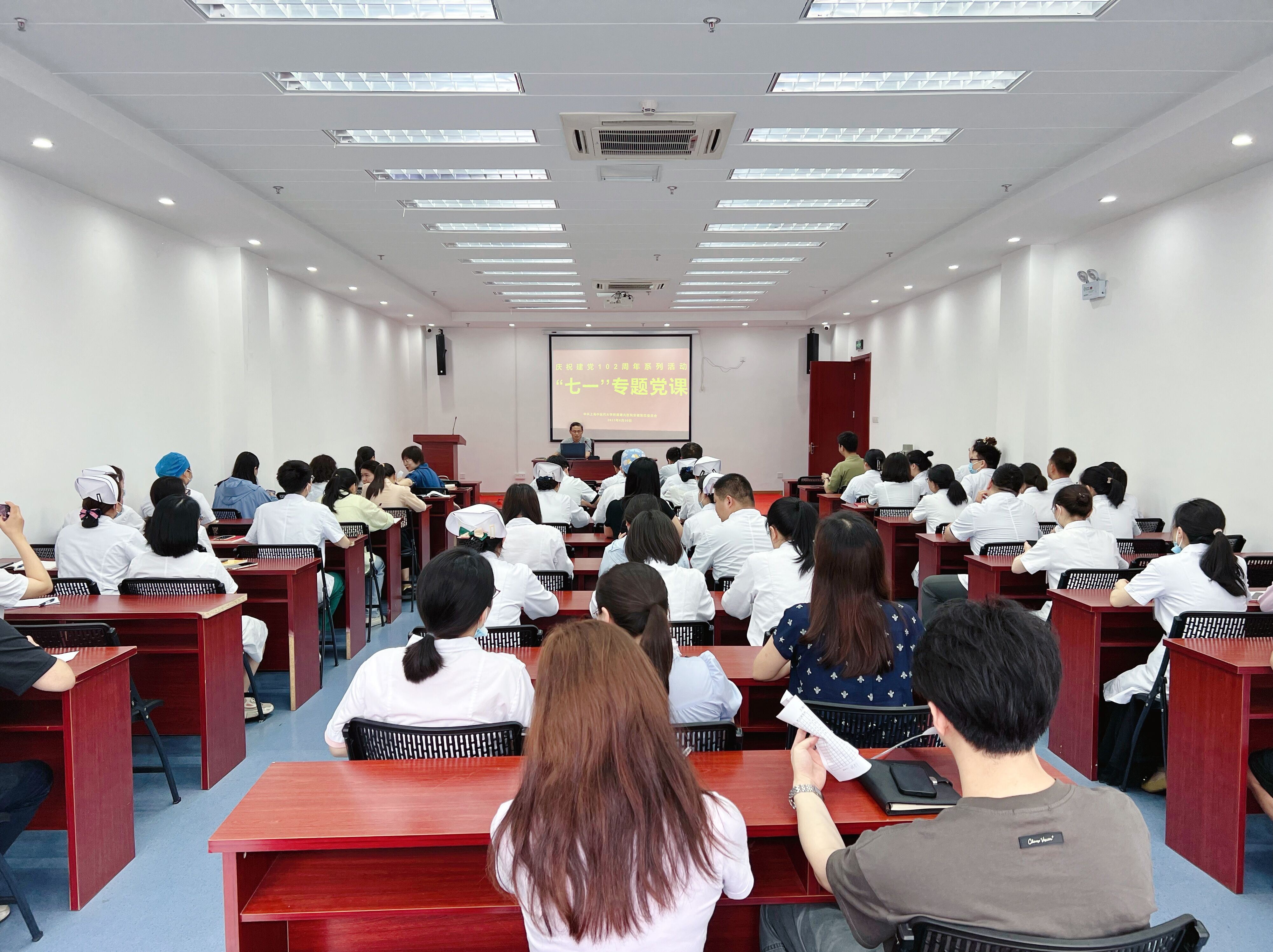 6月30日,为庆祝建党102周年,医院党委副书记翟从永在康复中心三楼报告厅为全体党员讲授专题党课——《二十大党章的30个重要修改》。