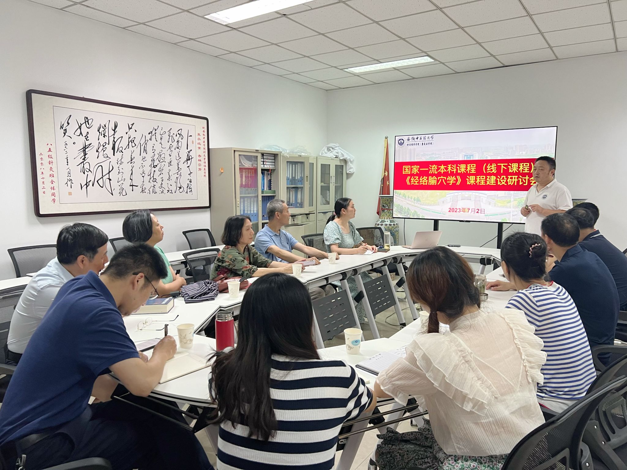 7月2日下午,针灸推拿学院针灸推拿系在新安楼十一楼会议室召开国家一流本科课程《经络腧穴学》建设研讨会,《经络腧穴学》课程负责人、教学督导胡玲教授,发展规划处副处长蔡荣林,学院副院长吴子建,针灸推拿系主任何璐、副主任崔帅、部分教师代表参会,会议由吴子建主持。