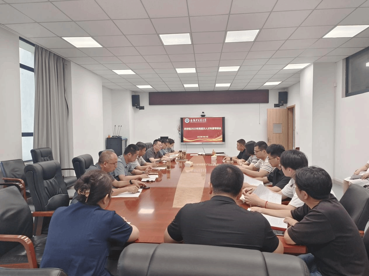 7月13日上午,药学院召开2023年上半年高层次人才年度考核会议,学院党委书记胡卿,副院长尹登科、王国凯、系主任及高层级人才参加会议。会议由尹登科主持。