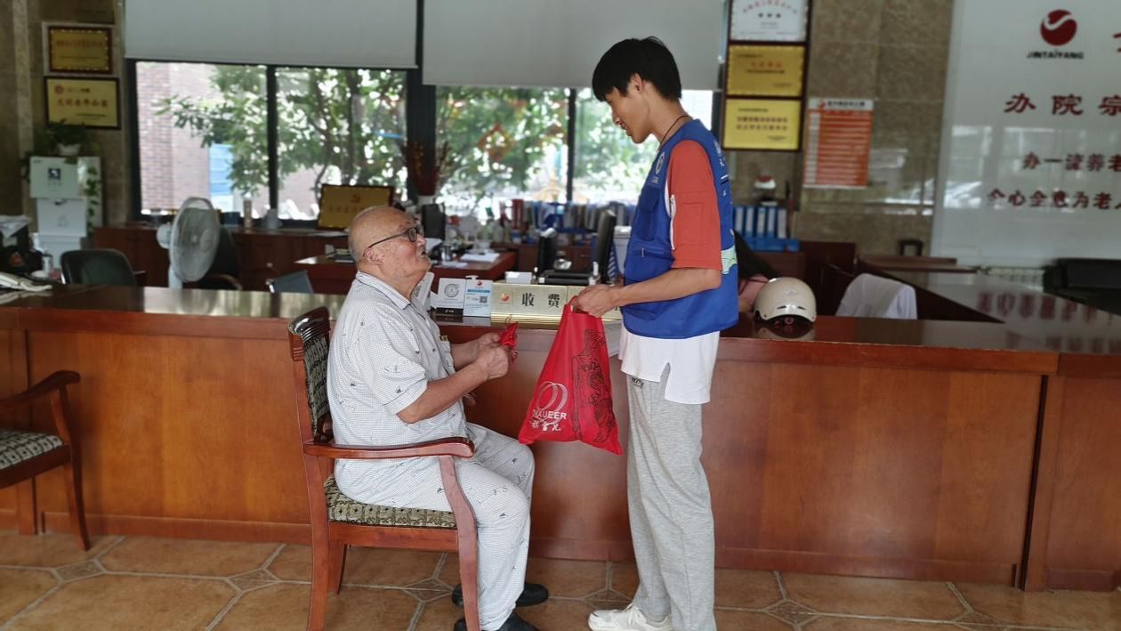 悠悠草药香,药囊润老心。队员们向敬老院的老人展示并赠送中药囊,解释药囊的来源和功效。中药香囊源自中医里的“衣冠疗法”,民间曾有“戴个香草袋,不怕五虫害”之说。香囊常用的是具有芳香开窍的中草药,如苍术、山奈、白芷、菖蒲、川芎、香附、辛夷等,可帮助老人扶正避疫。