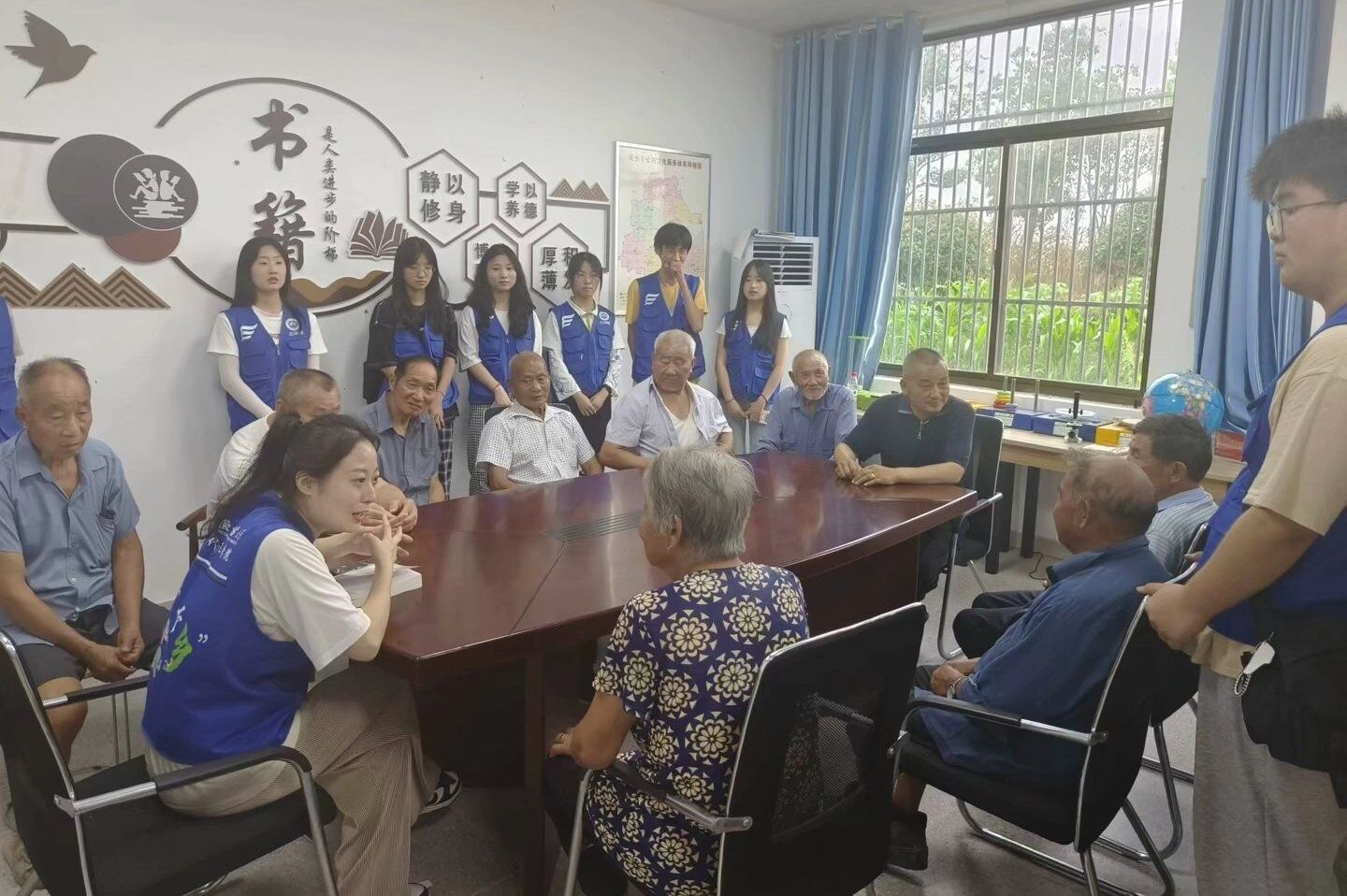 该团队被立项为理论普及宣讲团全国重点专项,出发前指导老师、医药信息工程学院学生第三党支部书记徐静指出,“要学习党的二十大精神,将理论普及乡村,将服务带给老人,将调研深入基层,认真学习习近平《论党的青年工作》,以青春书写中国式风采”。团队走进天长市金集镇人民政府、金集镇共青团、天长市金集镇头墩村、天长市金集镇益民村、天长市仁和集镇芦龙社区、天长市秦栏镇花园村等单位,走进天长市金太阳老年公寓、天长市秦栏镇养老服务中心、天长市金集镇养老老服务中心等各级养老公寓、养老服务中心以及寻常百姓家,与基层党务工作者、养老机构管理者深入沟通,更深入了解当地养老事业的发展近况,向各单位负责人提出疑惑,给出建议,擘绘新构想,设立新目标。团队成员将党的创新理论成果、党的二十大精神,用接地气、冒热气的“乡音土语”传达至当地老人、基层干部、群众百姓中,将“三下乡”打造成一个“行走的理论展览馆”。