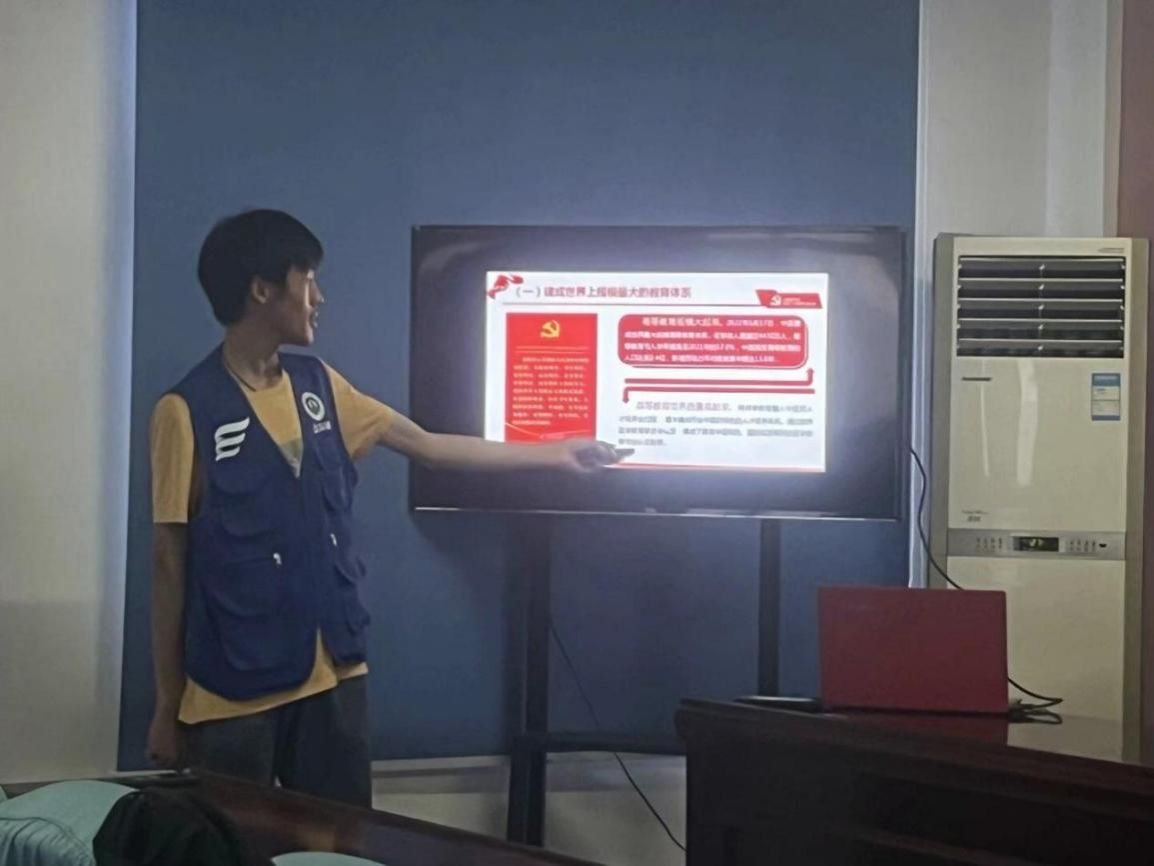 乡村振兴,人才先行。习近平总书记给中国农业大学科技小院的学生们的回信中对青年们提出建议,希望新时代青年志存高远、脚踏实地,把课堂学习和乡村实践紧密结合起来,厚植爱农情怀,练就兴农本领,在乡村振兴的大舞台上建功立业,为加快推进农业农村现代化、全面建设社会主义现代化国家贡献青春力量。队员们为老乡带来了先进的科学知识,宣讲了先进的科学理念,教学了先进的科学方法。指导老师和队员们进行了《科技汇聚强国梦,当代青年与时行》《以吾辈青春,建数字中国》等主题理论宣讲,倾情打造行走的“科技强国展览馆”。