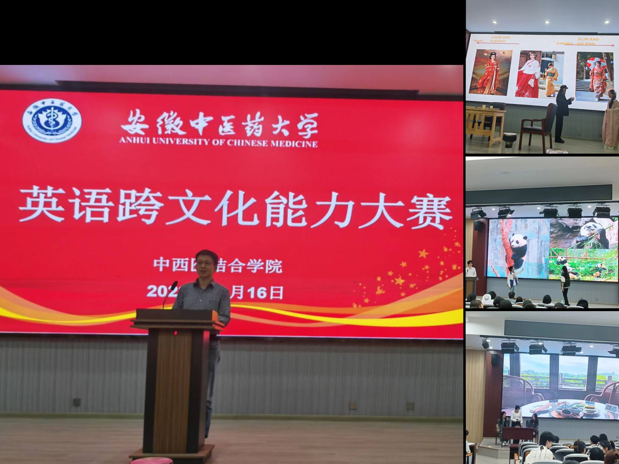 为落实立德树人根本任务,本着以赛促学、以赛促教的理念,全面推进《习近平谈治国理政》多语种版本“三进”工作,培养更多具有家国情怀、全球视野和专业本领的复合型人才,10月16日17:00,在中西医结合学院楼254学术报告厅举行了跨文化能力大赛中西医结合学院院赛,学院党委副书记顾义俊、人文与国际教育交流学院外语系主任朱家胜老师、汪红老师、王玉老师应邀担任评委。