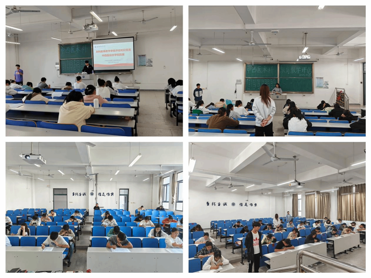 赛前学院各班级通过评估宣讲、主题班会、自学等各种形式对迎接审核评估进行了最广泛的宣传动员,组织全体学生学习《安徽中医药大学新一轮审核评估应知应会手册》,实现了学习全覆盖。