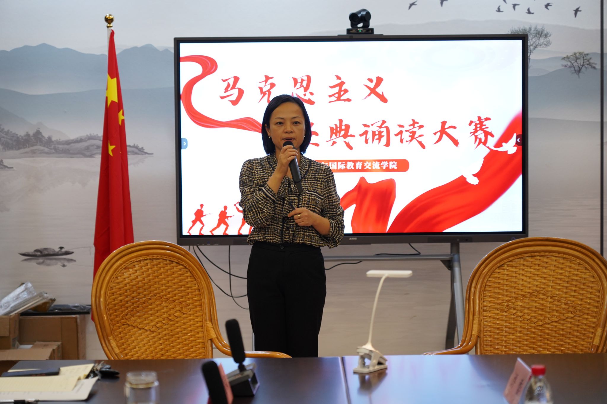 诵读马列经典,弘扬爱国精神。11月3日下午,人文与国际教育交流学院于惟新楼292室举办了马列经典诵读大赛院赛,比赛由马克思主义学院严家凤教授、往届获奖学生代表担任评委,学院党总支书记金晓琴、副书记彭青和,院团总支、辅导员老师参加了比赛。