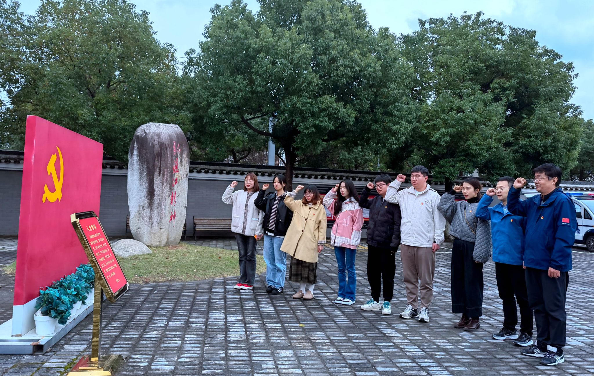 在渡江战役总前委旧址广场上,面向鲜红的中国共产党党旗,郭铮带领党员同志们重温入党誓词,誓言铿锵有力,激励每一位党员以党章规范自己的言行,牢记党的宗旨,履行党员义务,做一名合格党员。