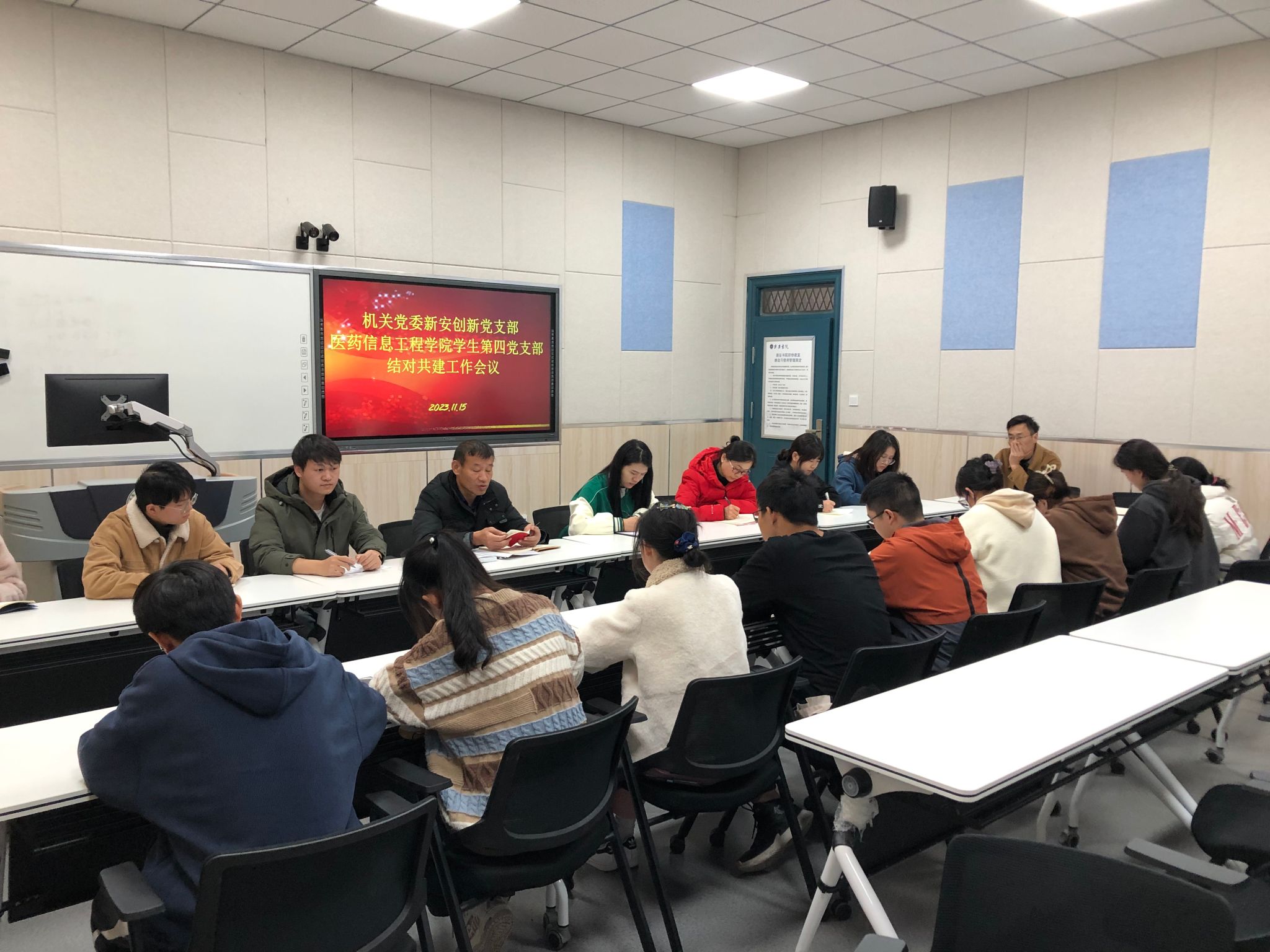 为落实学校党委《关于加强基层党建工作的若干举措》要求,发挥机关院系协同优势,11月15日下午,机关党委新安创新党支部与医药信息工程学院学生第四党支部开展了以“学习习近平总书记关于中医药传承创新论述”为主题的结对共建活动。机关党委新安创新党支部书记、创新创业学院院长吴臣军,医药信息工程学院学生第四党支部书记王雷雨以及两个党支部近30名党员参加了研讨活动。活动由吴臣军主持。