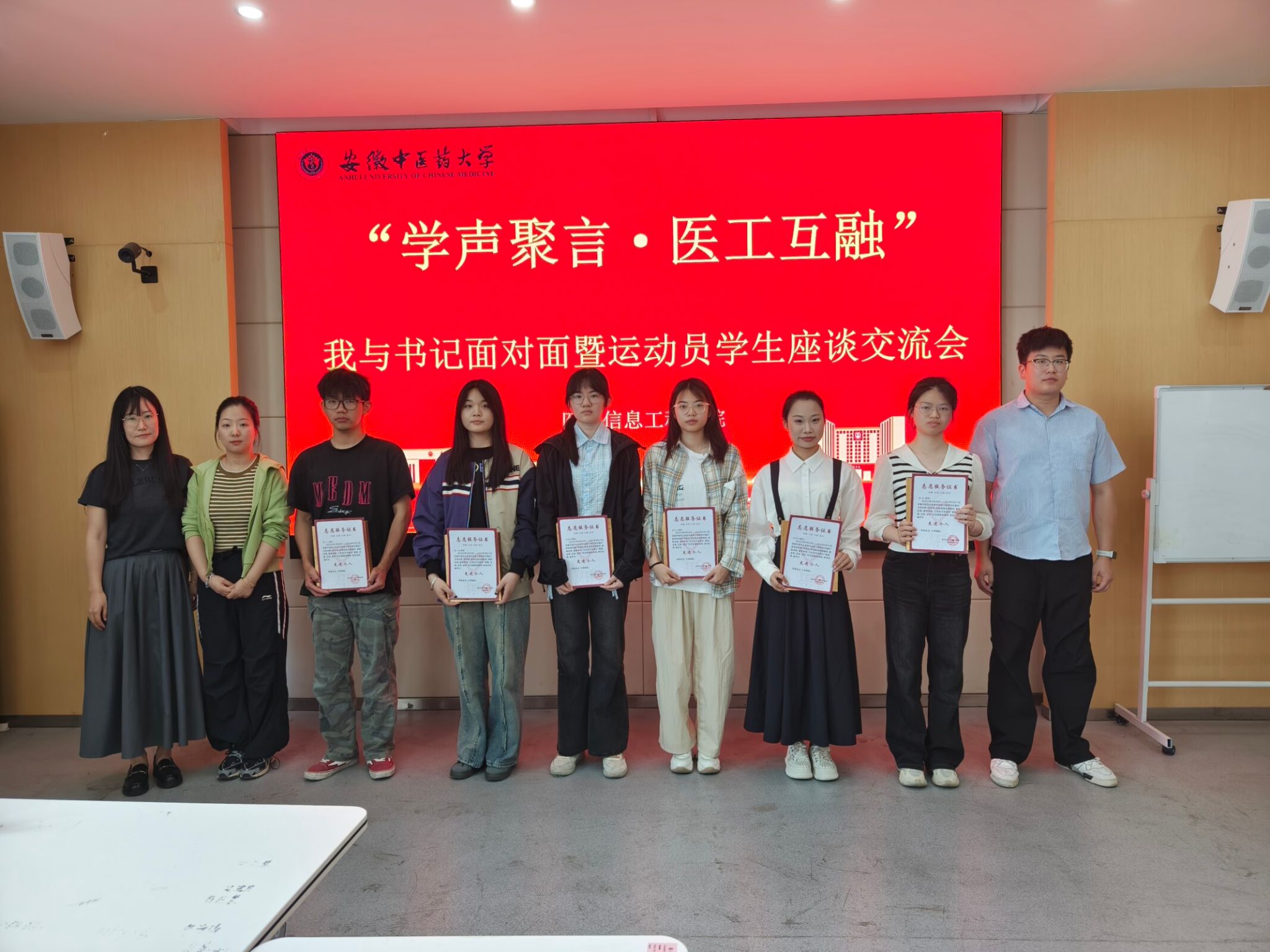 4月27日,医药信息工程学院举办“学声聚言・医工互融”—— "我与书记面对面"暨运动会总结座谈会。学院党委书记高霞、副书记李亚,辅导员、运动员和志愿者代表、学生会骨干参加,座谈会由李亚主持。