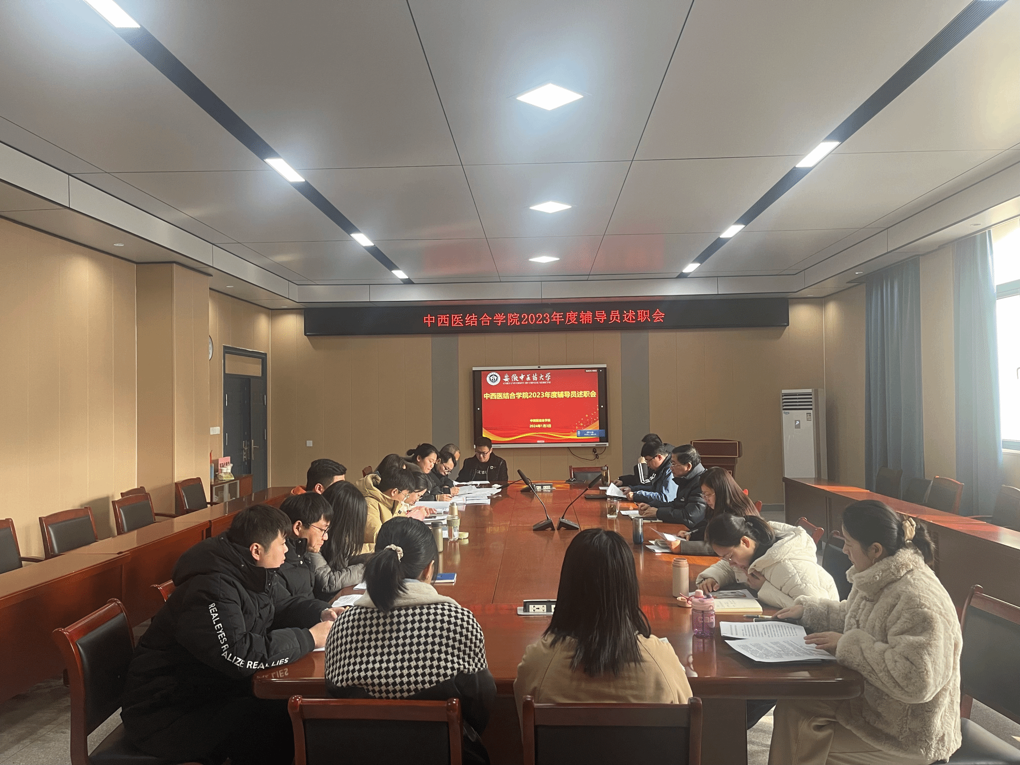 为提升辅导员队伍的专业化育人能力和水平,持续推进辅导员内涵式建设和品牌化发展,2024年1月3日下午,中西医结合学院组织召开2023年辅导员述职交流会。学院党委书记尹必武、党委副书记顾义俊、副院长王靓和全体专兼职辅导员参加交流会,会议由顾义俊主持。