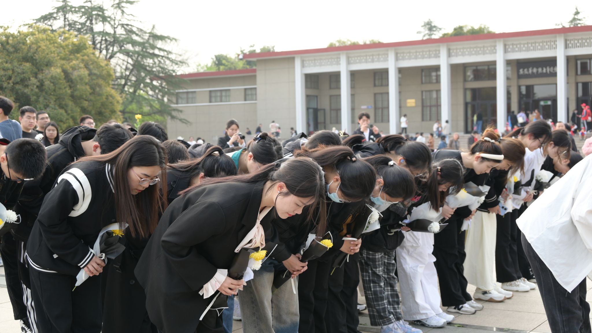 烈士纪念广场松柏颔首,菊花绽香,丰碑矗立,庄严肃穆。上午9时,根据工作人员的安排,全体人员齐唱中华人民共和国国歌。国歌唱毕,全场肃立,向革命先烈们默哀。全体人员鞠躬致敬并依次向烈士敬献了鲜花。