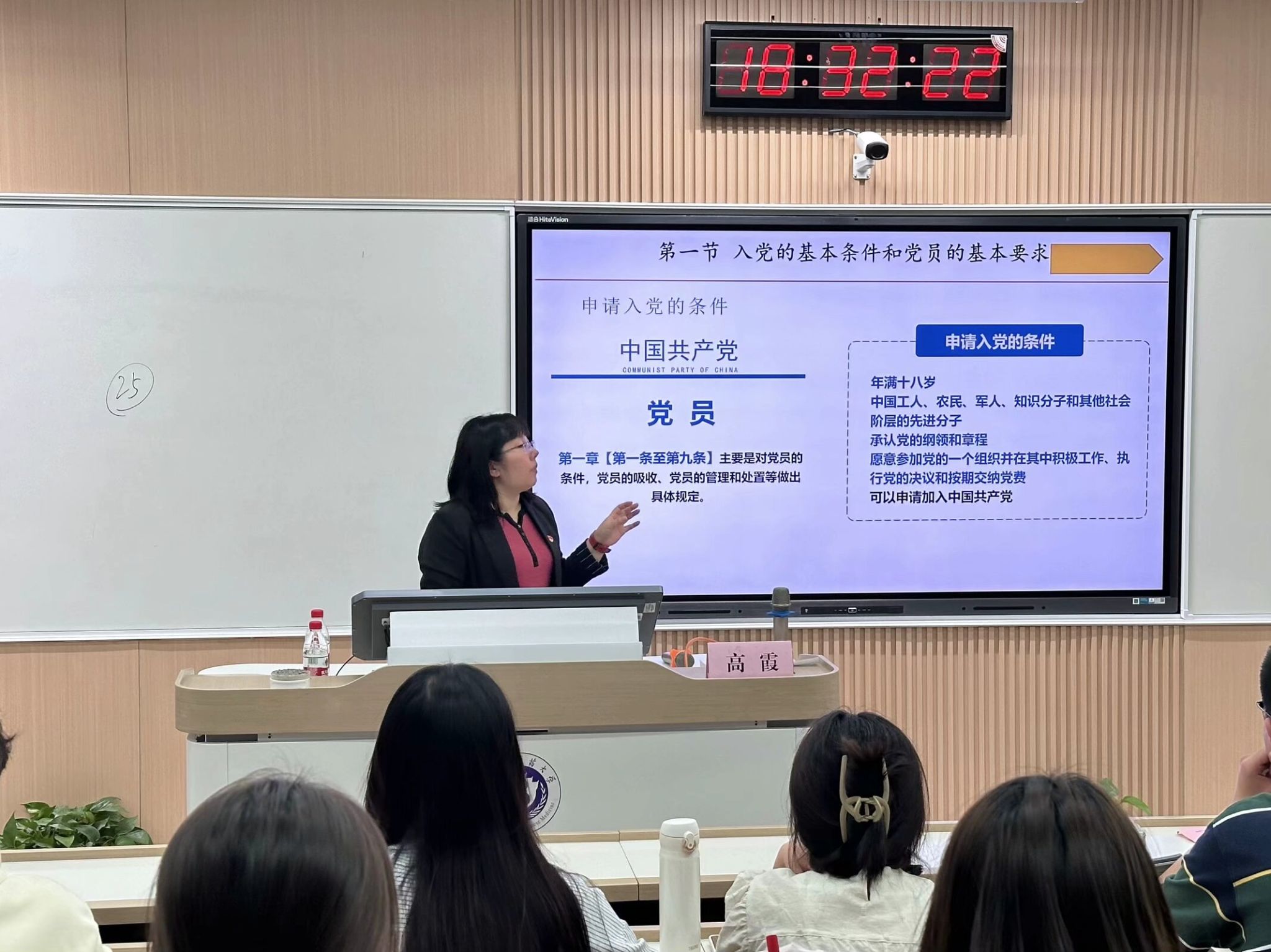随后,高霞为全体学员以《入党的程序和条件》为题上了第一堂党课,她带领学员学习了入党的基本条件、党员的基本要求和发展党员的基本程序等内容,强调入党积极分子不仅要争取在组织上入党,更重要的要在思想上入党。(黄邦峻/文 新媒体中心/图 高霞/审核)