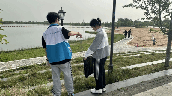 保护少荃湖,树立环保新风尚。志愿团成员前往少荃湖,开展“保护少荃湖”劳动实践活动,捡拾湖边的垃圾,维护美丽环境。大家两两分工,一人捡拾,一人装袋,互相配合,仔细清理草丛中和人行道上的垃圾,增强了大家爱护环境的意识。