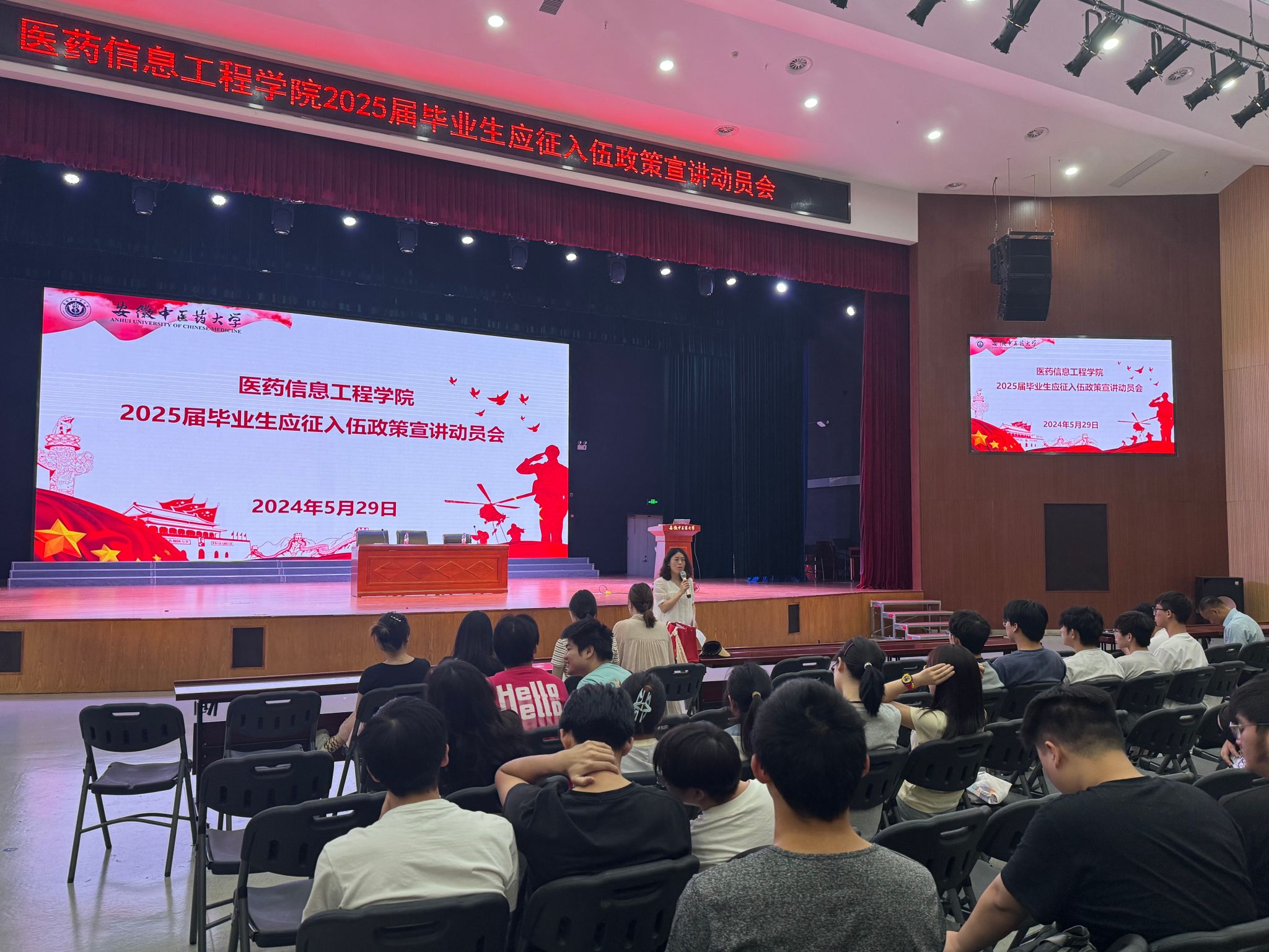 为切实做好2025届毕业生应征入伍工作,号召青年大学生踊跃报名参军入伍,5月29日下午,医药信息工程学院举办2025届毕业生应征入伍政策宣讲动员会,会议邀请学生处副处长詹钟华作入伍政策宣讲,学院党委副书记、纪委书记李亚主持会议,全体辅导员参会。