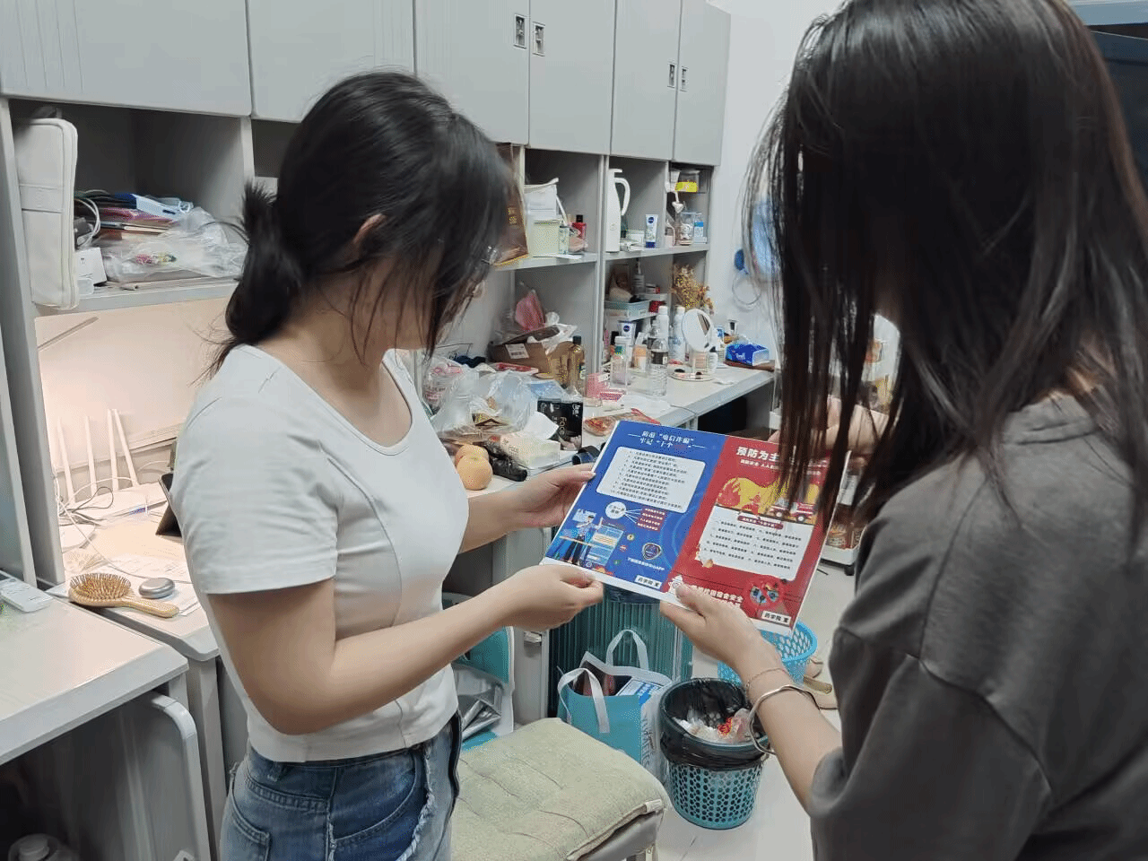 学工办主任方文韬强调防范“电信诈骗”,牢记“十个凡是”以及“三不一多”原则,坚持“预防为主,生命至上”,重视校园宿舍安全,拒绝使用违规电器,并结合宣讲内容与联络员进行问答互动,派发宣传贴。