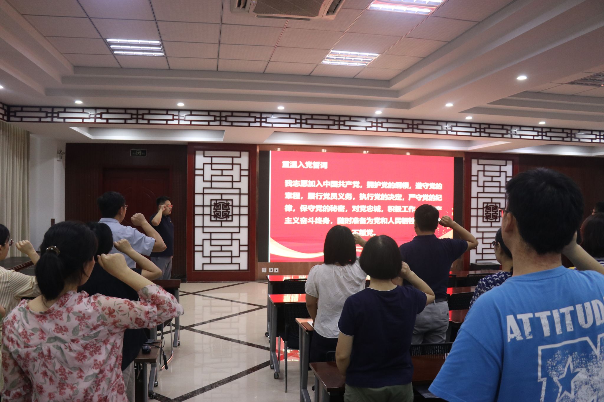 会中,药学院组织员王艺伟带领全体党员重温入党誓词,字字句句铿锵有力,彰显了坚定理想信念、不忘初心使命的坚强决心。