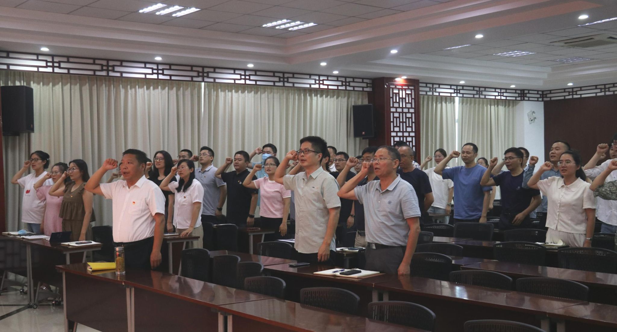 为庆祝中国共产党成立103周年,结合党纪学习教育,7月1日下午,药学院召开全体党员大会暨警示教育会,会议由学院党委书记胡卿主持,全体教师党员和学生党支部书记参加会议。