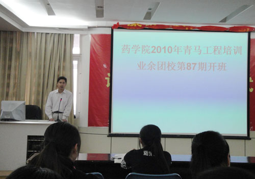 5月11日晚,药学院2010年“青马工程”培训暨第87期业余团校正式开课。该院党总支副书记张亚辉给党员上了第一课。