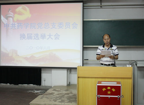按照校党委对党总支委员会换届选举工作的部署和要求,中共药学院总支委员会换届选举党员大会于6月23日举行,会议审议通过了上一届党总支的工作报告,选举产生了新一届总支委员。