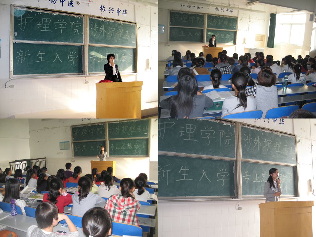 9月30日上午,护理学院“2010级新生入学教育系列活动――专业思想教育”在拉开帷幕。首场讲座邀请了护理教研室主任肖洪玲老师以及教学秘书袁娟老师为涉外护理专业全体新生进行了专业教育讲座。