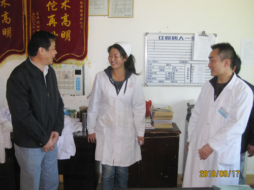 9月17日,一附院院长杨骏带着医院党政领导和全院1200多名职工对医疗队员的关爱,专程赴松潘看望该院援中藏医院医疗队员。安徽省卫生厅援松潘医疗队总队长张尔庆,松潘县卫生局书记肖体芳,中藏医院院长马玉寿,全体医疗队员到机场迎接。 在9月17日下午松潘县卫生局召开的座谈会上,每位队员简要介绍了自己一个月多来的工作和生活情况,王汉明队长详细汇报了医疗队四十天的援建工作所取得的成绩和队员们的生活及学习情况。马玉寿介绍了队员们的工作情况,对医疗队四十天来的工作进行了总结,高度评价一附院医疗队员是“当代的白求恩”。据马院长介绍,队员们共接诊800多人次,抢救危重患者25人次,实施各类手术30多台,各项检查1000多人次,进行教学查房和全院业务讲座12次,经济效益较去年同期翻番。马院长称赞医疗队是一支纪律严明,作风顽强,团结协作的队伍;是能克服生活上的各种困难保持高昂精神的队伍;是能克服设备简陋,工作环境差等困难,因陋就简,因地制宜创造性地开展医疗工作的队伍;是对生活上的困难没有丝毫怨言,对工作上的问题从不推诿的队伍。