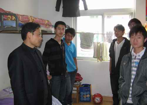 学生们积极反映自己和班级的学习生活动态,部分学生会干部还就即将开展的宿舍文化案头设计大赛进展情况进行了汇报。翟从永给予了鼓励和支持,并建议团总支要深入了解大学生的思想动态,在宿舍文化、宿舍安全等方面继续进行同学们喜闻乐见、实践中行之有效的探索,引导大学生强化“我的宿舍我的家”的主人翁意识和集体归属感,把宿舍建设成学习的好场所、交流的舒心地、休息的温暖家。就同学们关心的上海世博会、玉树救灾、学校党代会教代会等热点,翟从永与同学们进行了亲切交流,并号召同学们要身处校园、心怀天下,从身边小事做起,从宿舍文明抓起,培养自己的文明礼仪修养和荣校爱校的大局观念。