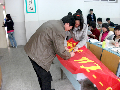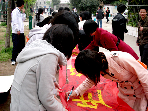 今年世界地球日是以“珍惜地球资源 转变发展方式 倡导低碳生活”为主题,同学们通过制作宣传展板、举办“低碳生活,我们在活动”签名活动、分发宣传单、播放音像资料等方式,引导我校大学生节约资源、保护环境、爱护地球,从小事做起,从身边事做起。