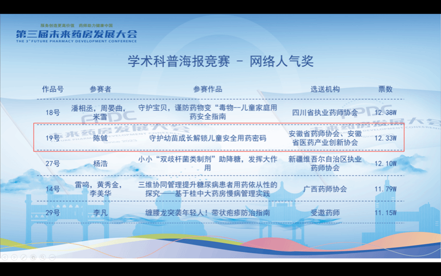 本次大赛为全国药学工作者搭建了高水平的竞技交流平台,反映了行业在提升药学服务能力、推动科普创新方面的丰硕成果,同时也是第二附属医院药学团队深耕专业、服务创新的缩影。此次获奖,尤其是聚焦儿童用药安全的科普成果,彰显了第二附属医院在推动合理用药、提升全民健康素养方面做出的积极贡献。今后,第二附属医院将持续以更优质的专业服务筑牢百姓用药安全防线,为健康中国建设注入坚实的药学力量。(第二附属医院/文图 雷黎/审核)