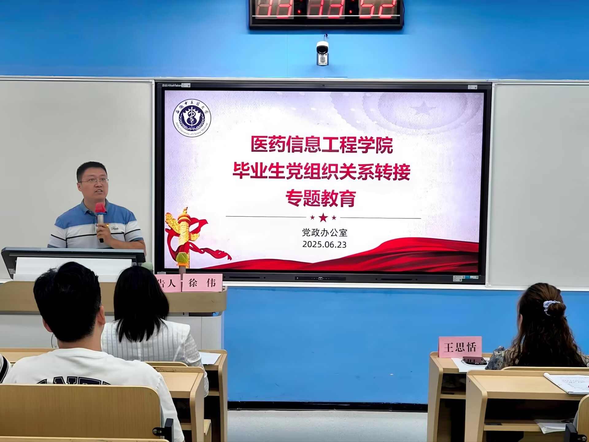 党政办公室主任、组织员徐伟就2025届毕业生党员组织关系转接,以及党员教育管理工作要求做专题教育。