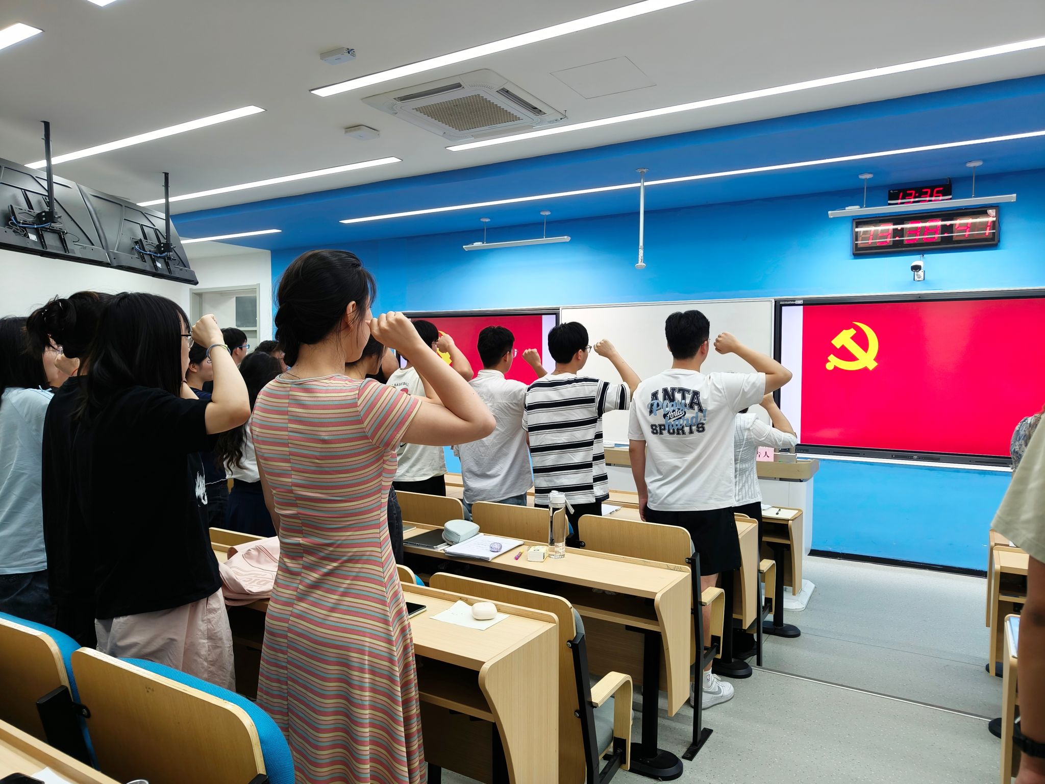 会议最后,全体党员重温了入党誓词。(徐伟/文 唐皖欣/图 高霞/审核)