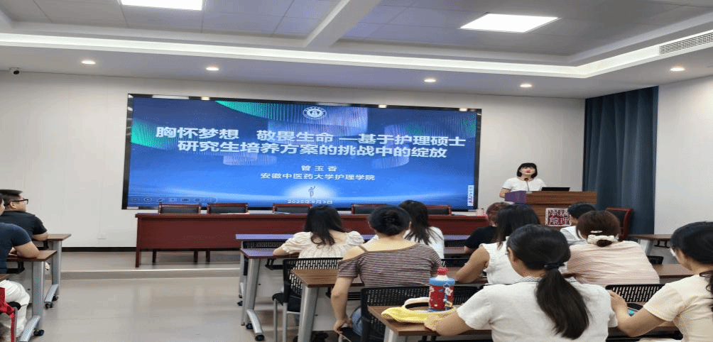 管玉香为新生们带来了一场题为《胸怀梦想,敬畏生命——基于护理硕士研究生培养方案的挑战中的绽放》的专题讲座。她详细解读了护理不同类别硕士研究生的培养目标、课程体系、实践要求以及学位标准,帮助新生们全面了解未来的学习任务,并科学制定三年读研规划。她结合生动案例,深刻阐述了“胸怀梦想”与“敬畏生命”的护理职业内核,鼓励同学们勇于面对挑战,在科研与临床的磨砺中绽放青春光彩,实现人生价值。