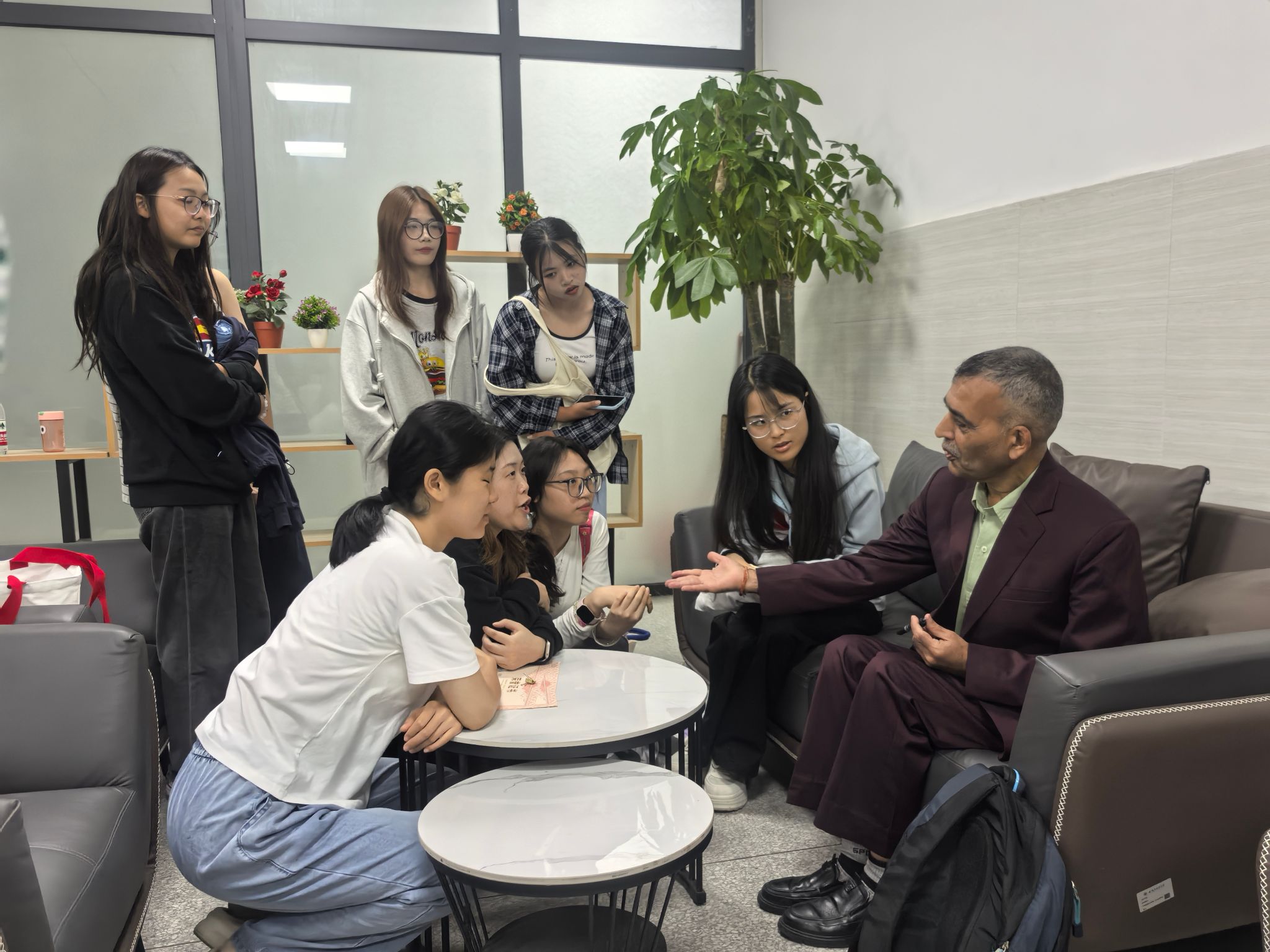 讲座中,雷格米教授系统阐述了汉语及中华文化在南亚地区的传播现状、机遇与挑战。作为尼泊尔特里布文大学孔子学院首任尼方院长,他分享了孔子学院在尼泊尔开展汉语教学、举办文化活动的实践案例,生动展现了汉语学习在当地的普及情况与文化影响力。同时,他结合在尼泊尔主流媒体发表的关于中国发展模式、“一带一路”倡议及尼中合作的评论观点,从学术与实践双重视角分析了中华文化与南亚本土文化的交融路径,强调教育合作与学术交流是推动汉语及中华文化海外传播的核心载体。讲座结束后,汉语国际教育专业学生积极提问并与雷格米教授互动交流。(黎晖/文图 叶兰兰/审核)