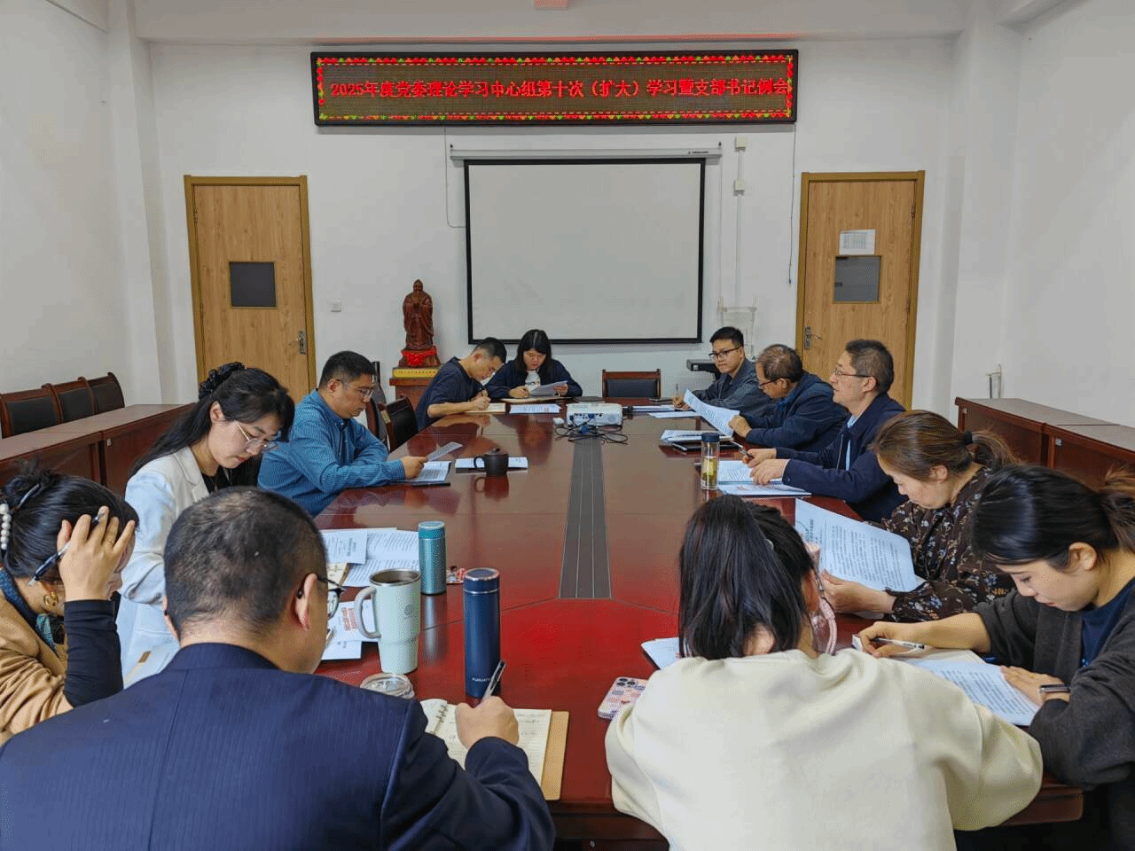 10月15日下午,医药经济管理学院开展2025年党委理论学习中心组第十次扩大学习暨支部书记例会,本次会议以“以创新驱动发展 以实干引领学院未来”为主题,学院党政领导、党委委员、各党支部书记参加会议,会议由学院党委书记张军主持。