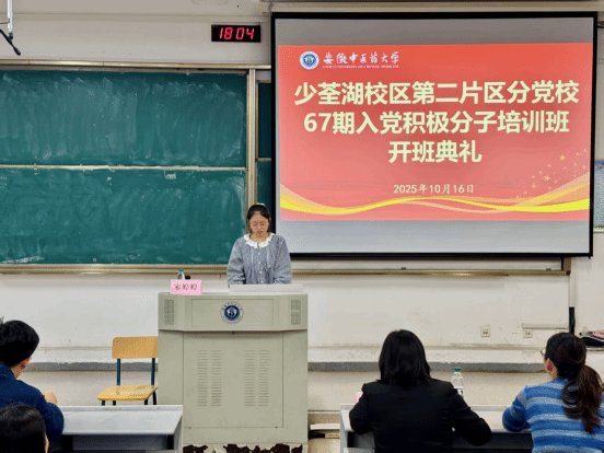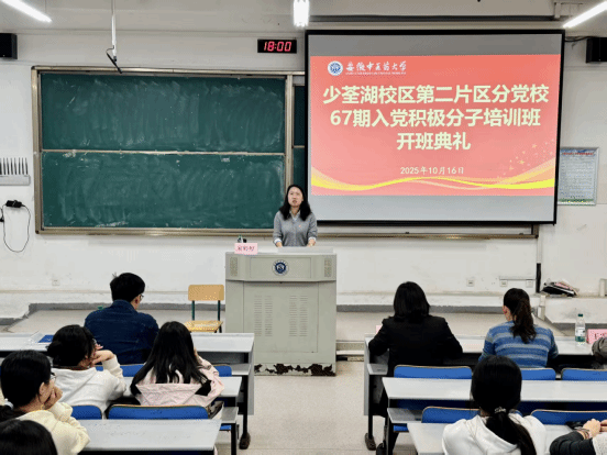 10月16日,安徽中医药大学少荃湖校区第二片区分党校第67期入党积极分子暨青马工程培训班顺利开班,医药信息工程学院党委书记高霞、第一临床医学院党委副书记宋婷婷,医药信息工程学院、第一临床医学院学生党支部书记以及本期155名学员参加开班典礼。高霞作动员讲话,宋婷婷主持典礼。