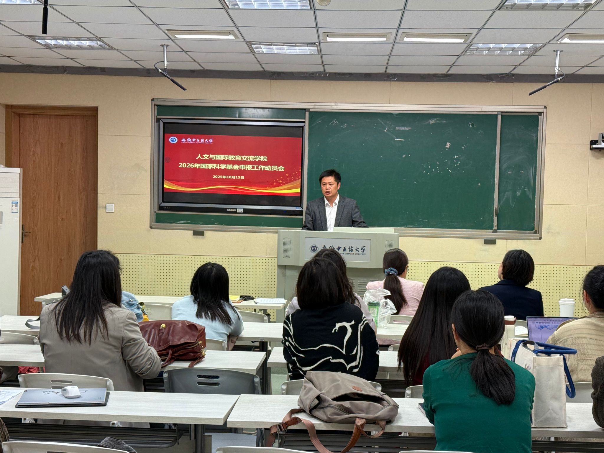 10月15日下午,人文与国际教育交流学院召开2026年国家科学基金项目申报动员会,副院长张筱荣主持会议,学院全体教师参会。