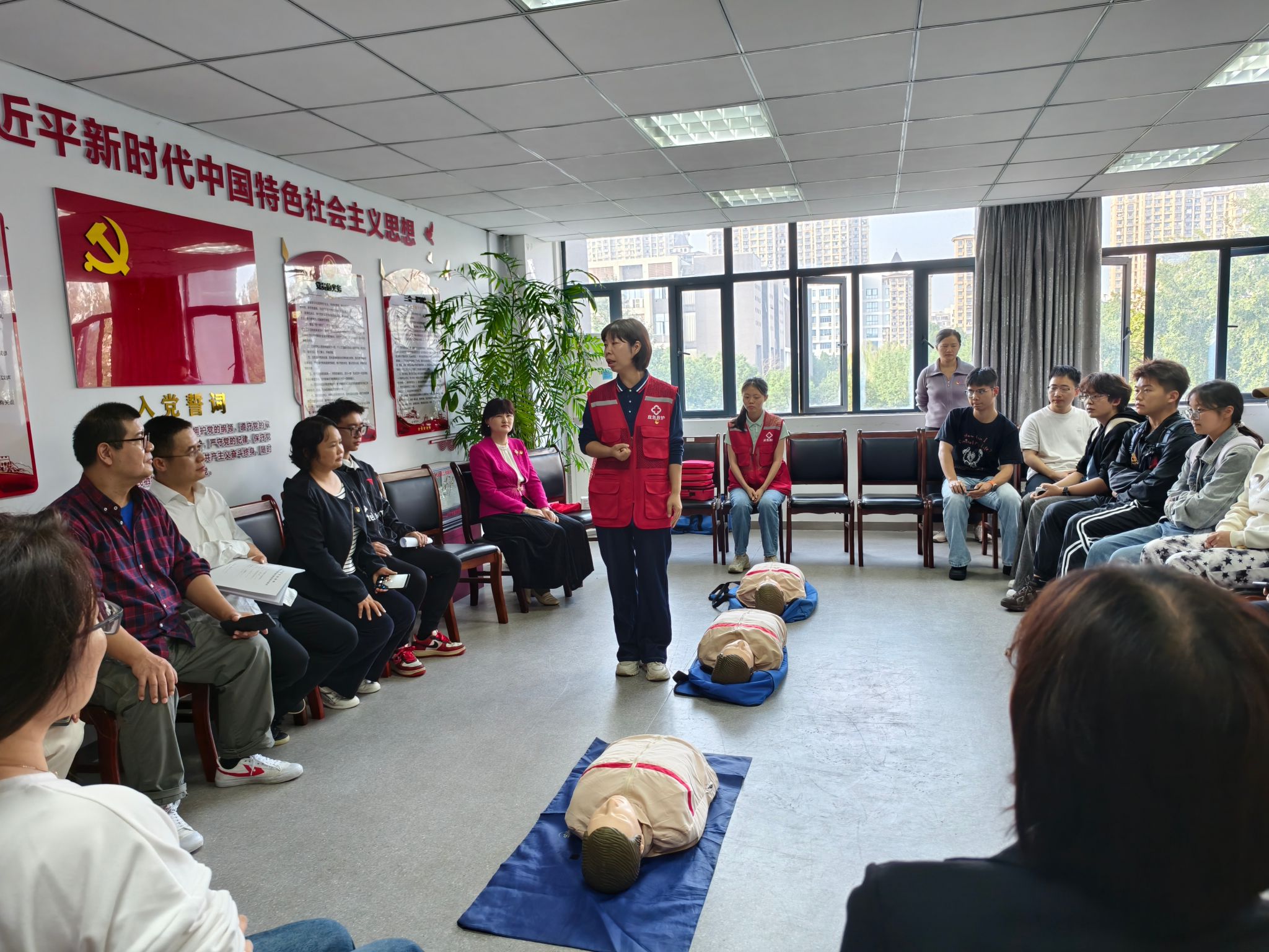 活动尾声,护理学院团队结合专业优势,现场开展急救技能实操培训,详细讲解并演示心肺复苏、海姆立克急救法的操作要点,参会人员积极参与模拟练习,在实践互动中进一步强化了“党建+技能”的融合交流。