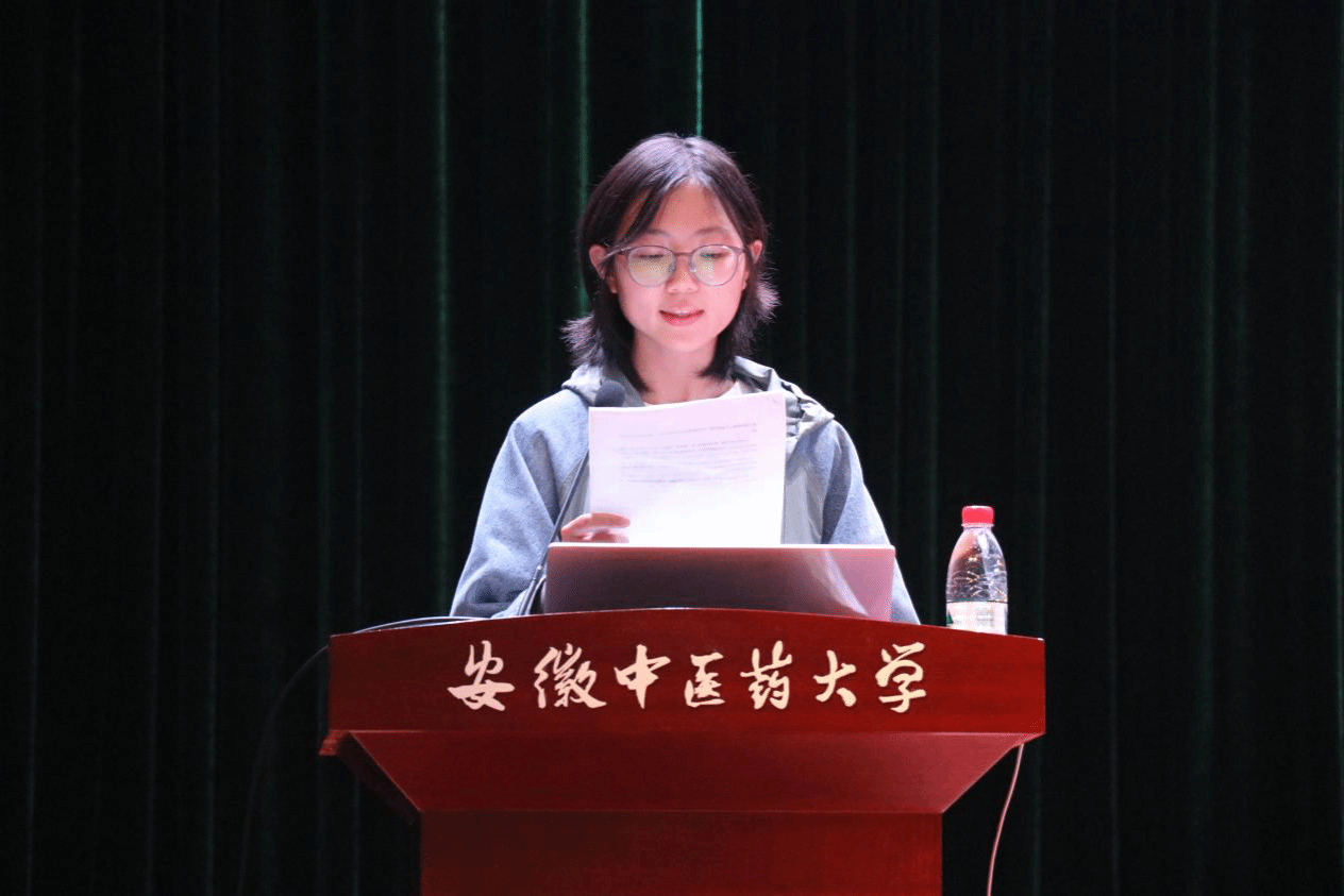 2025级药学2班郭昕睿代表新生发言,她代表全体2025级药学院新生约定,不忘来时路、不负少年志,以青春之名、赴时代之约,在安中医这片沃土,共同书写属于2025级新生的璀璨华章。