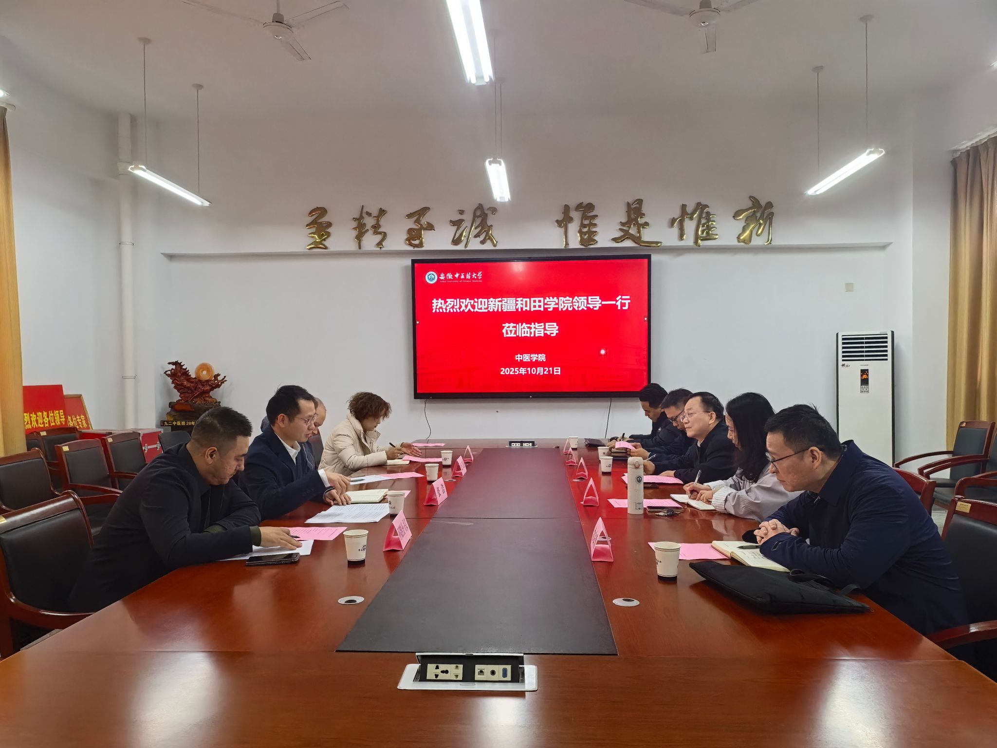 10月21日下午,新疆和田学院中医学院党总支副书记张浩一行4人来院调研,中医学院院长方向明,第一临床医学院党委副书记宋婷婷,第一临床医学院副院长沈安鲁,中医学院副院长朱国旗以及各办公室人员参会,会议由方向明主持。