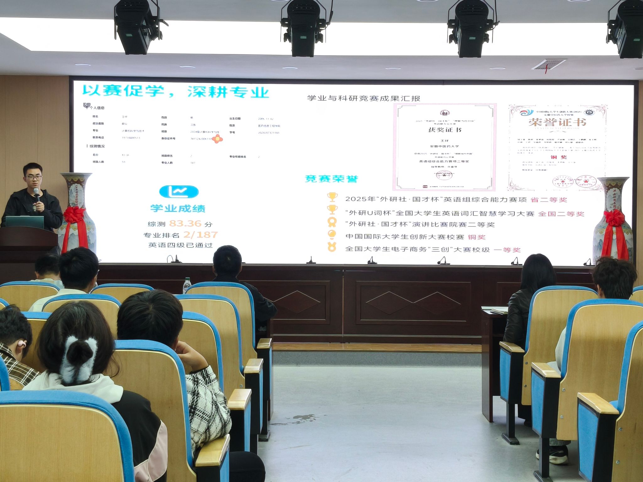 比赛中,24级大数据讯飞班张文熙、刘德敏,24级计算机讯飞班王祥,23级大数据讯飞班张稚圆四位学子依次登台。他们以“最美”为底色,从学习科研、志愿服务等维度分享故事;或深耕数据建模,在学科竞赛中突围;或投身公益传递温暖,用真挚的讲述赢得现场阵阵掌声。