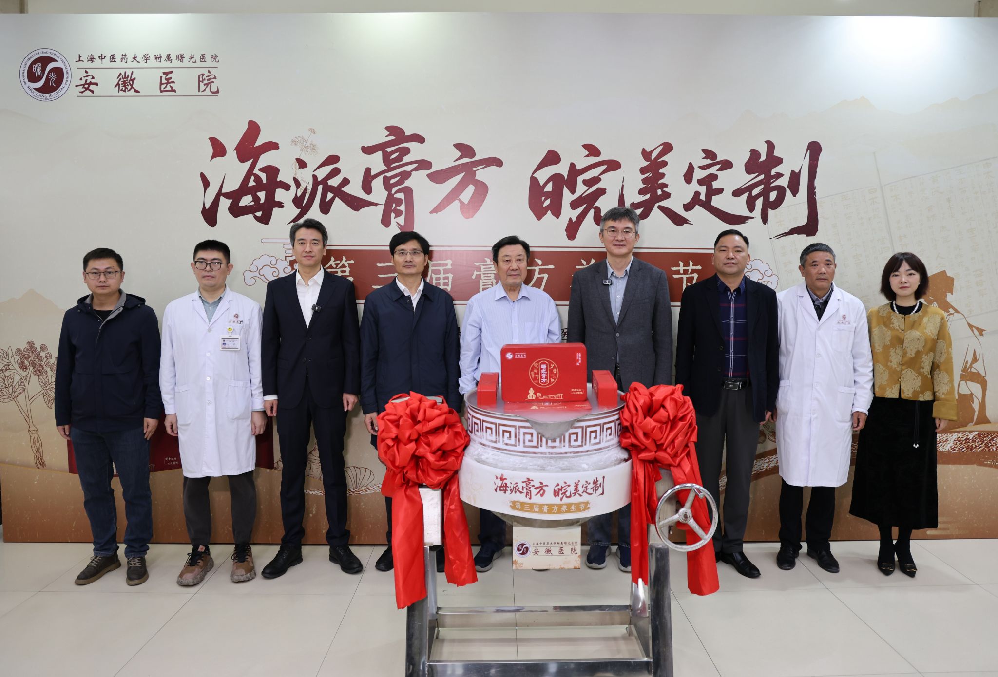 11月7日当天,曙光安徽医院第三届膏方养生节顺利开幕,安徽中医药大学社会合作处处长方晓、五里墩街道办事处党工委书记吴岭、医院领导班子成员等出席仪式,共同揭开古法熬膏的铜锅,见证本届膏方养生节的开幕。