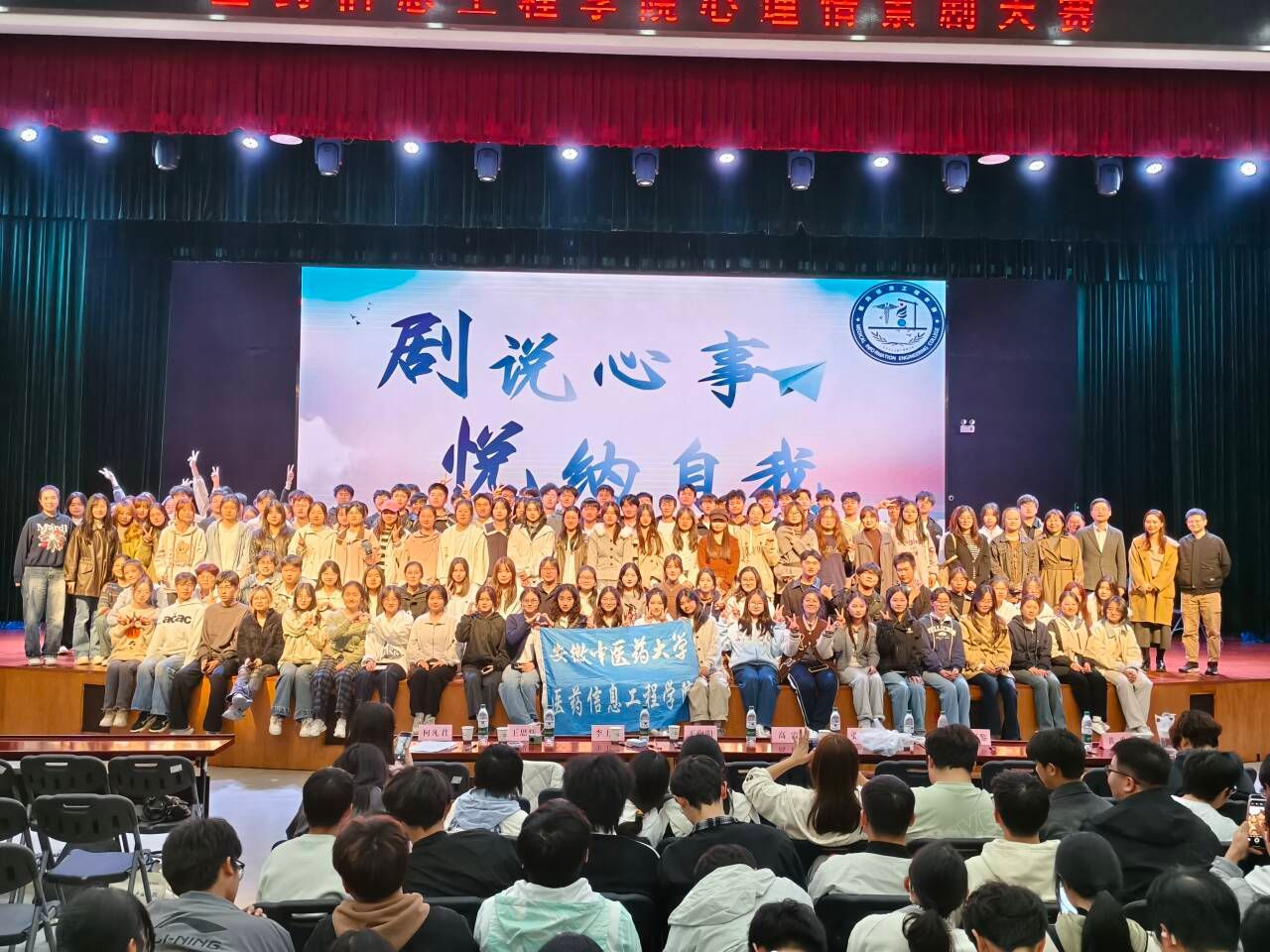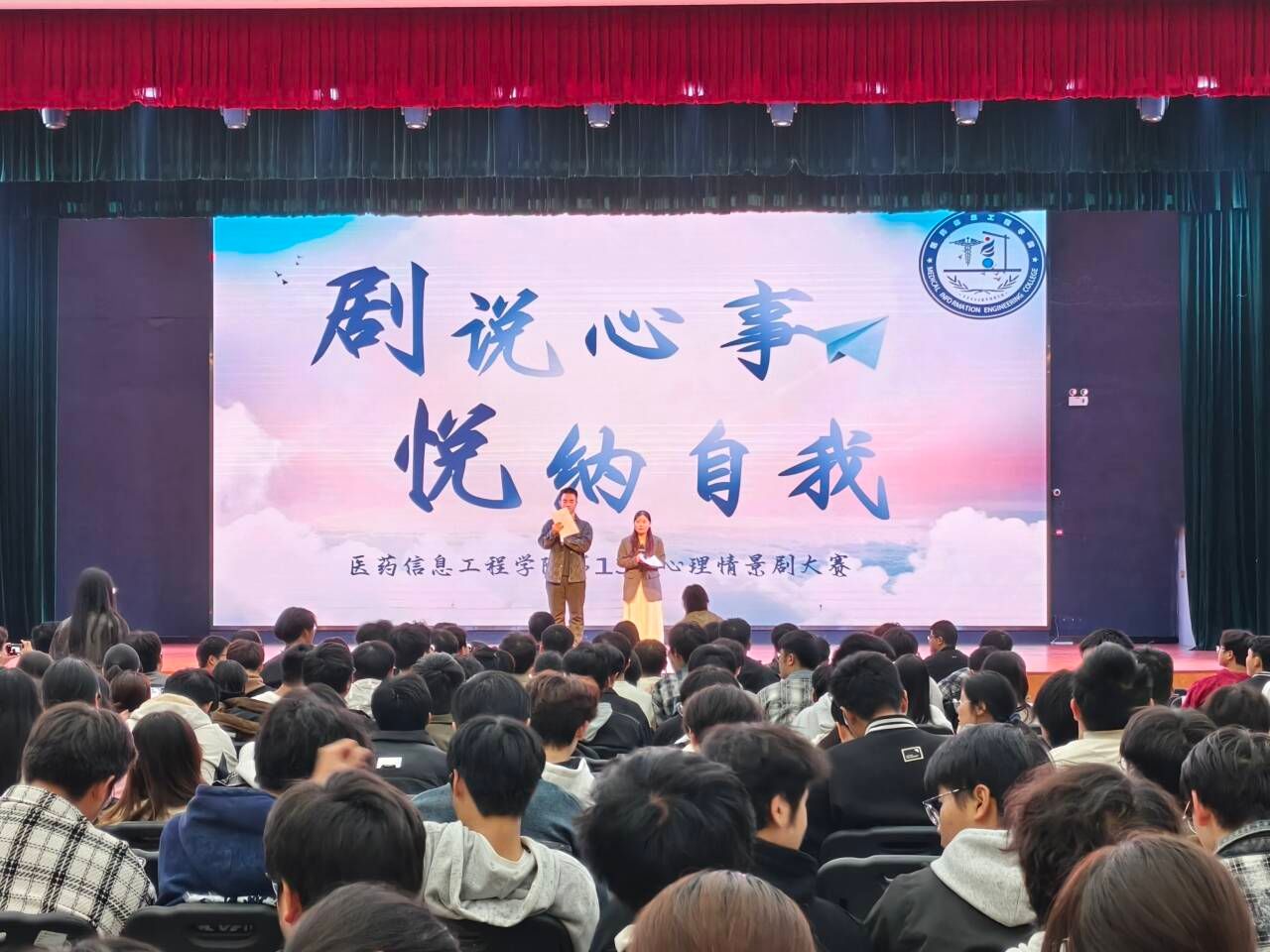 为深入贯彻落实立德树人根本任务,扎实推进心理健康教育工作,培育学生积极健康的心理品质,增强情绪管理与人际交往能力,营造和谐校园文化氛围,11月6日,医药信息工程学院举办“剧说心事,悦纳自我”心理情景剧大赛。学院党委书记高霞,院党委副书记、纪委书记王向阳,学生处心理健康教育科负责人张晓雯、学院全体辅导员出席活动,与400余名学生代表共同见证信工学子舞台上的心理成长与青春风采。