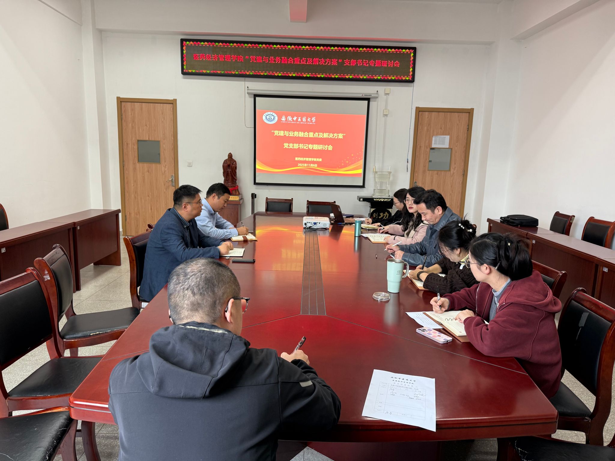 为深入贯彻落实新时代党的建设总要求和新时代党的组织路线,切实破解党建与业务“两张皮”难题,以高质量党建引领学院各项事业高质量发展,11月6日下午,医药经济管理学院党委组织召开“党建与业务融合重点及解决方案”党支部书记专题研讨会。会议由学院党委书记张军主持,党委副书记谢啸及各党支部书记参加。