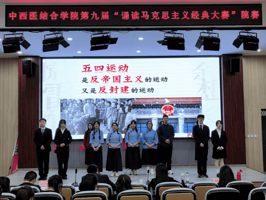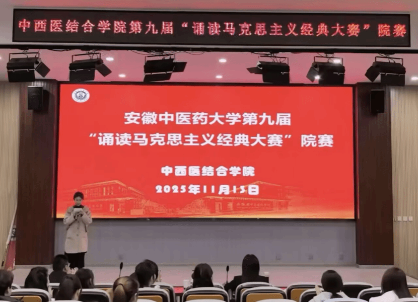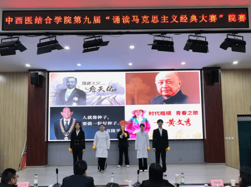 诵读马列经典,洞见真理之光。11月13日,中西医结合学院第九届“诵读马克思主义经典大赛”院赛在至精楼B254报告厅举行。本次大赛特邀马克思主义学院“马克思主义中国化”教研室陈书华老师、“中国近现代史纲要”教研室李秋晨老师,学院党委副书记彭青和、行政办主任云大清老师担任评委,学院2024级8个班级参加比赛。