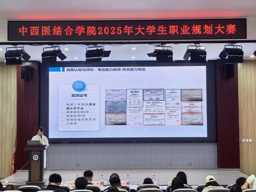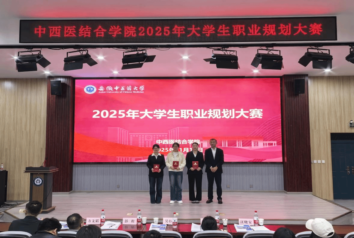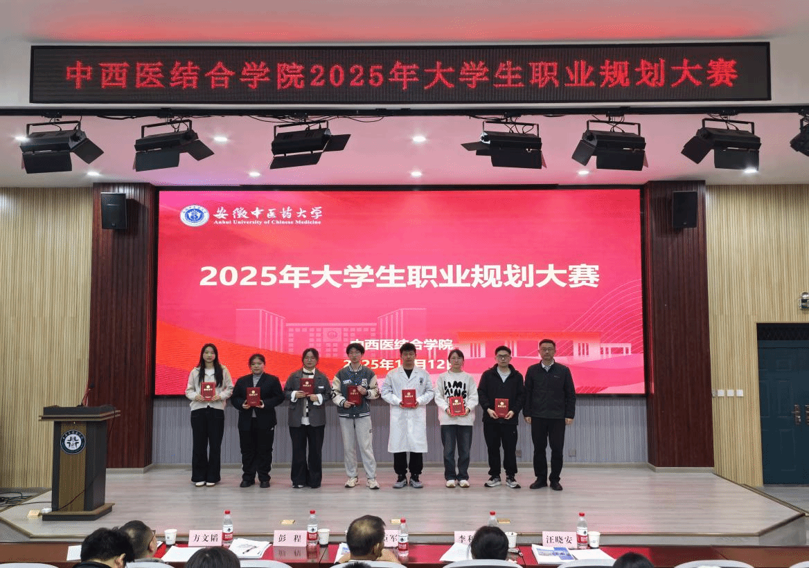 为全力提升学生职业生涯规划意识与求职能力,11月12日晚,中西医结合学院举办2025年大学生职业规划大赛,校团委书记彭程,体育健康学院直属党支部书记、院长吴臣军,学生处就业市场科科长李利丽,药学院学工办主任方文韬和中西医结合学院辅导员汪晓安担任评委。学院各年级200余名学生现场观赛。